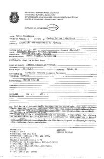 CARLOS SCLIAR 1939/1983 Voltar Documento 800 Baixar DESCRIÇÃO Miniatura Compartilhe TÍTULOCARLOS SCLIAR 1939/1983ANO DO EVENTO1983DESCRITIVO / ASSUNTOSDOCUMENTAÇÃONÚMERO DO PACOTE0800EQUIPE TÉCNICAAP - ARTES PLÁSTICAS / ARTES VISUAISLISTAGEM DE MATERIAISCartaz: 1468 Catálogo: 0829 a 0831 Documento Textual: 2766 a 2775 Folheto: 0529; 0530 Matéria Jornalística: 3878 HEMEROTECA vide documento em anexo Continuar navegando SÔNIA EBLING 1969/1984 TRINTA ANOS DE ARTE BRASILEIRA 1949/1979 Voltar para a lista de itens