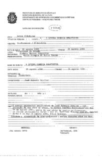DIVINA COMÉDIA BRASILEIRA, A Voltar Documento 433 Baixar DESCRIÇÃO Miniatura Compartilhe TÍTULODIVINA COMÉDIA BRASILEIRA, AANO DO EVENTO1980DESCRITIVO / ASSUNTOSEXPOSIÇÃONÚMERO DO PACOTE0433EQUIPE TÉCNICAAP - ARTES PLÁSTICAS / ARTES VISUAISLISTAGEM DE MATERIAISFita Cassete: 0491 Continuar navegando ITÁLIA-BRASIL / RELAÇÕES DESDE O SÉCULO XVI VÍDEO-PERFORMANCES Voltar para a lista de itens
