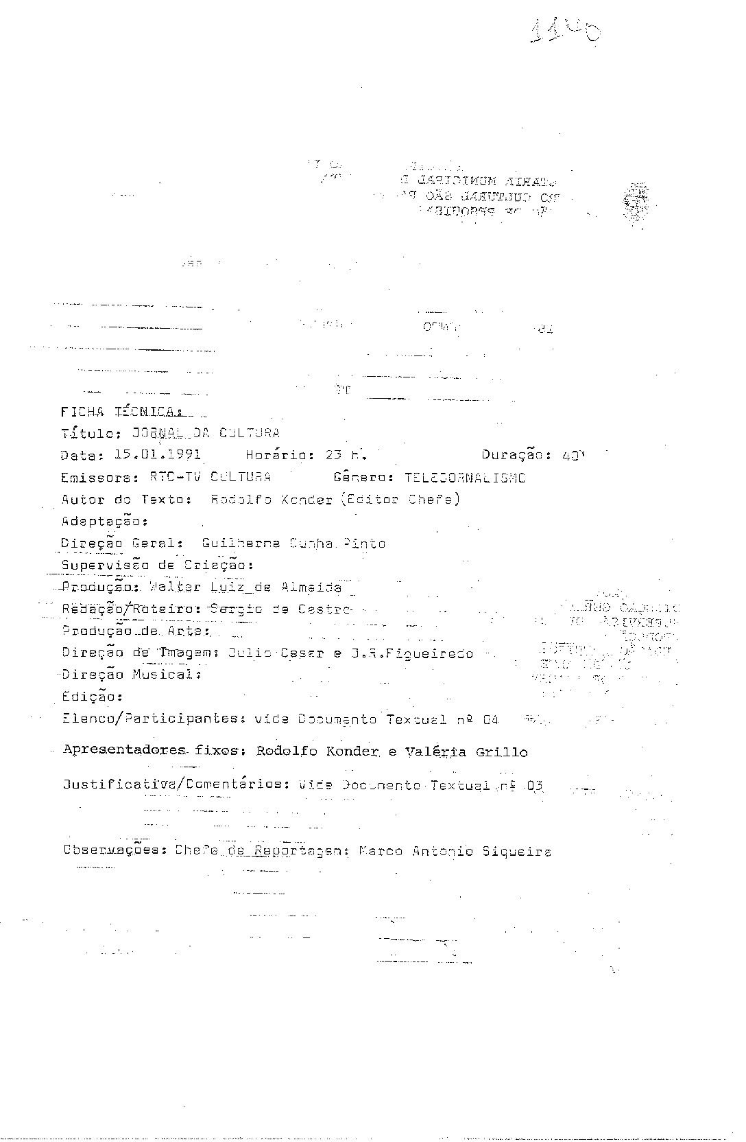 JORNAL NACIONAL APRESENTADO POR CID MOREIRA E SÉRGIO CHAPELLIN; JORNAL DA CULTURA APRESENTADO POR RODOLFO KONDER
