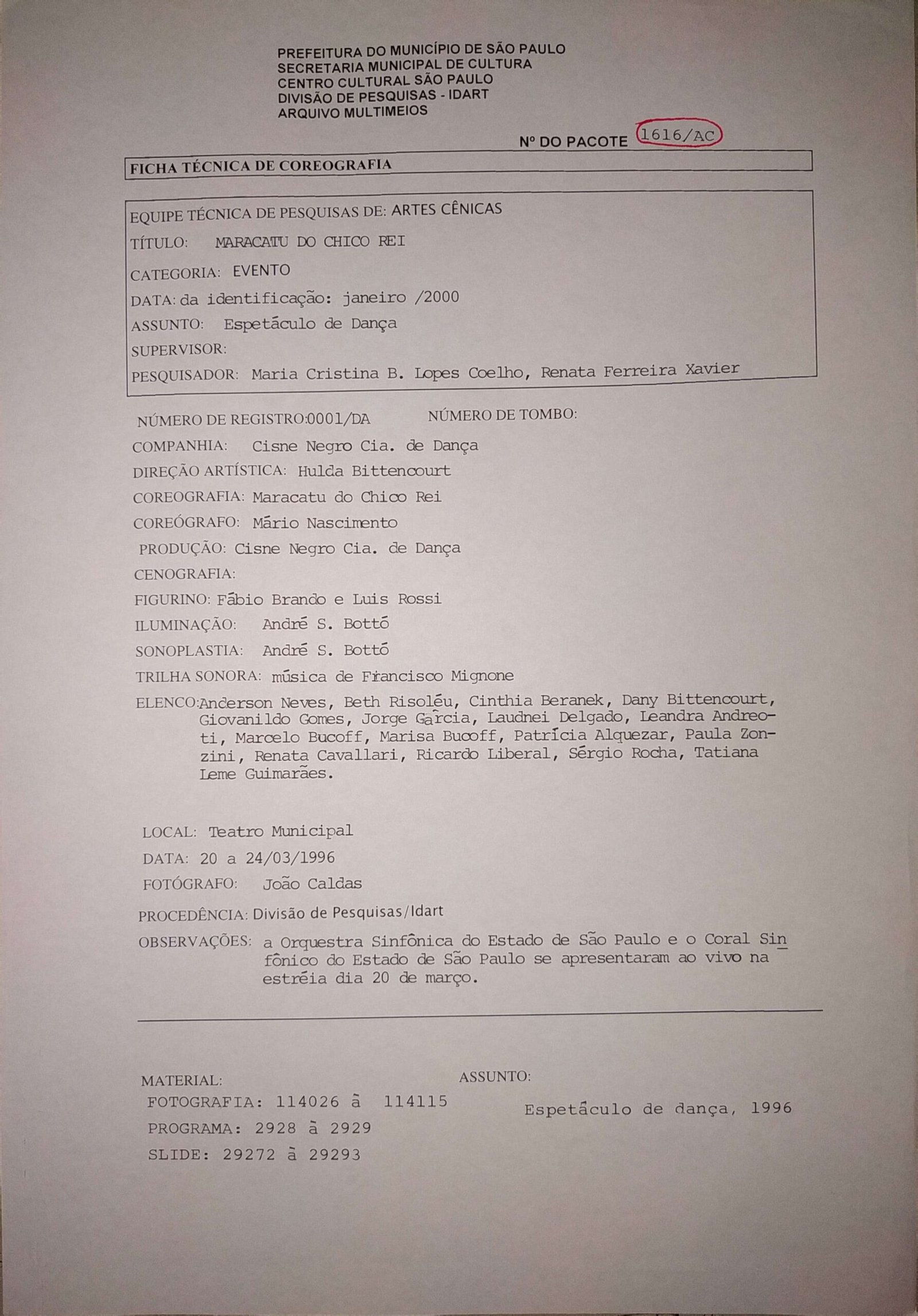 MARACATU DO CHICO REI Voltar Documento 1616 Baixar DESCRIÇÃO Miniatura Compartilhe TÍTULOMARACATU DO CHICO REIANO DO EVENTO1996DESCRITIVO / ASSUNTOSESPETÁCULO DE DANÇANÚMERO DO PACOTE1616EQUIPE TÉCNICAAC - ARTES CÊNICASLISTAGEM DE MATERIAISFOTOGRAFIA FO 114026 ATÉ 114115 PROGRAMA PR 2928 ATÉ 2929 SLIDE SL 29272 ATÉ 29293 Continuar navegando YERMAS INSIDE Voltar para a lista de itens
