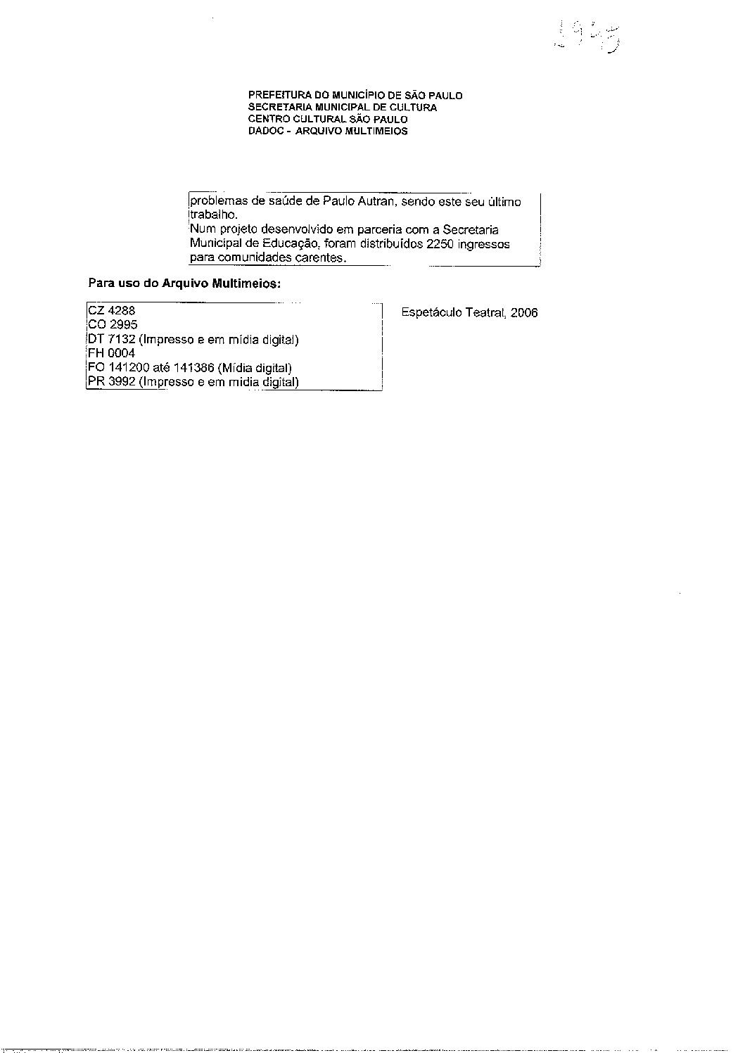 O AVARENTO Voltar Documento 1945 Baixar Anexos 1945 verso DESCRIÇÃO Miniatura Compartilhe TÍTULOO AVARENTOANO DO EVENTO2006DESCRITIVO / ASSUNTOSESPETÁCULO TEATRALNÚMERO DO PACOTE1945EQUIPE TÉCNICAAC - ARTES CÊNICASLISTAGEM DE MATERIAISCARTAZ CZ 4288 CONVITE CO 2995 DOCUMENTO TEXTUAL DT 7132 FOLHETO FH 0004 FOTOGRAFIA FO 141200 ATÉ 141386 PROGRAMA PR 3992 Continuar navegando NAVALHA NA CARNE VESTIDO DE NOIVA Voltar para a lista de itens