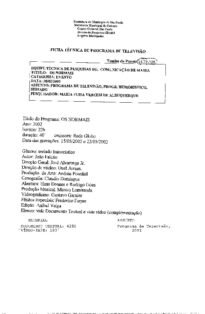 OS NORMAIS Voltar Documento 1679 Baixar DESCRIÇÃO Miniatura Compartilhe TÍTULOOS NORMAISANO DO EVENTO2002DESCRITIVO / ASSUNTOSPROGRAMA DE TELEVISÃONÚMERO DO PACOTE1679EQUIPE TÉCNICACM - COMUNICAÇÃO DE MASSALISTAGEM DE MATERIAISDOCUMENTO TEXTUAL DT 4286 VIDEOTAPE VT 0183 Continuar navegando SUPER TÉCNICO CIDADE ALERTA – 1ª EDIÇÃO Voltar para a lista de itens