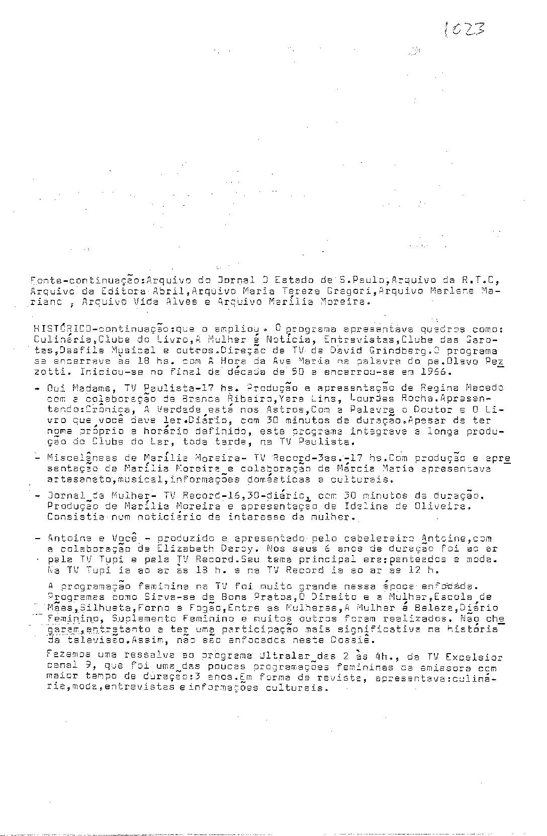 • PROGRAMAS DE TELEVISÃO PARA MULHERES LEVADOS AO AR PELAS VÁRIAS EMISSORAS DE TELEVISÃO NO PERÍODO DE 1950 A 1970