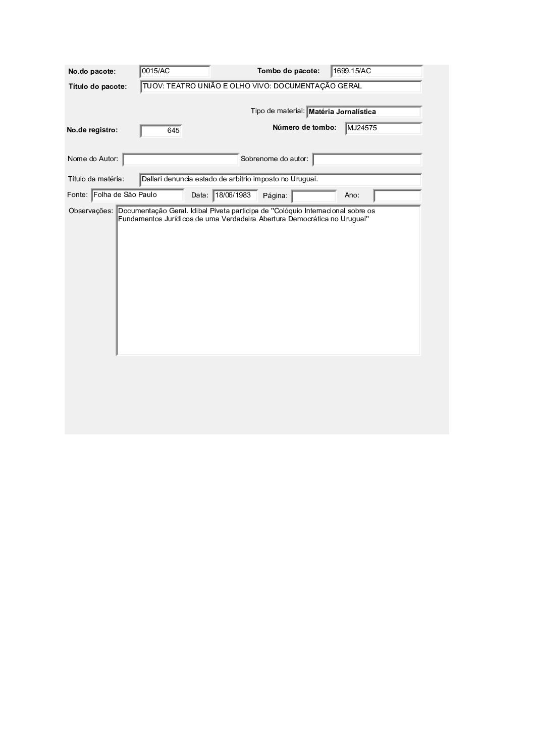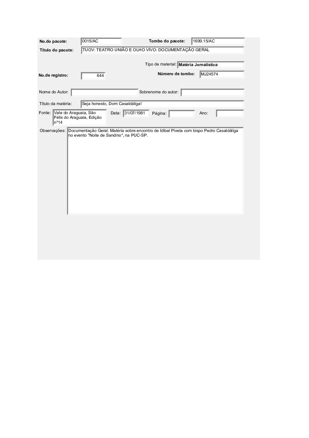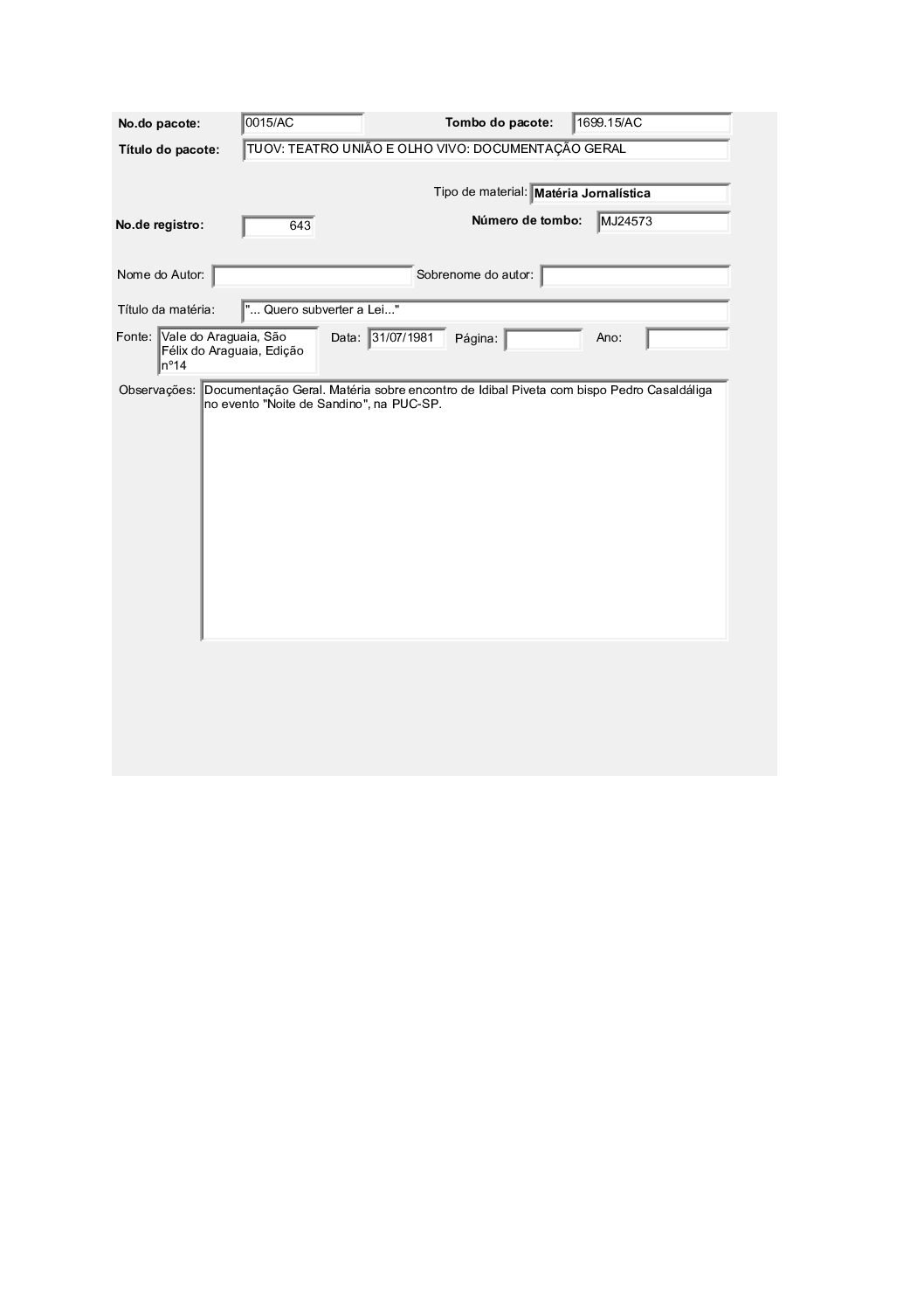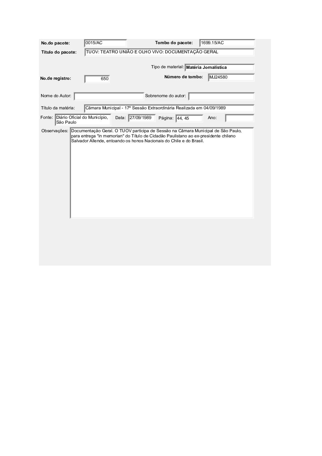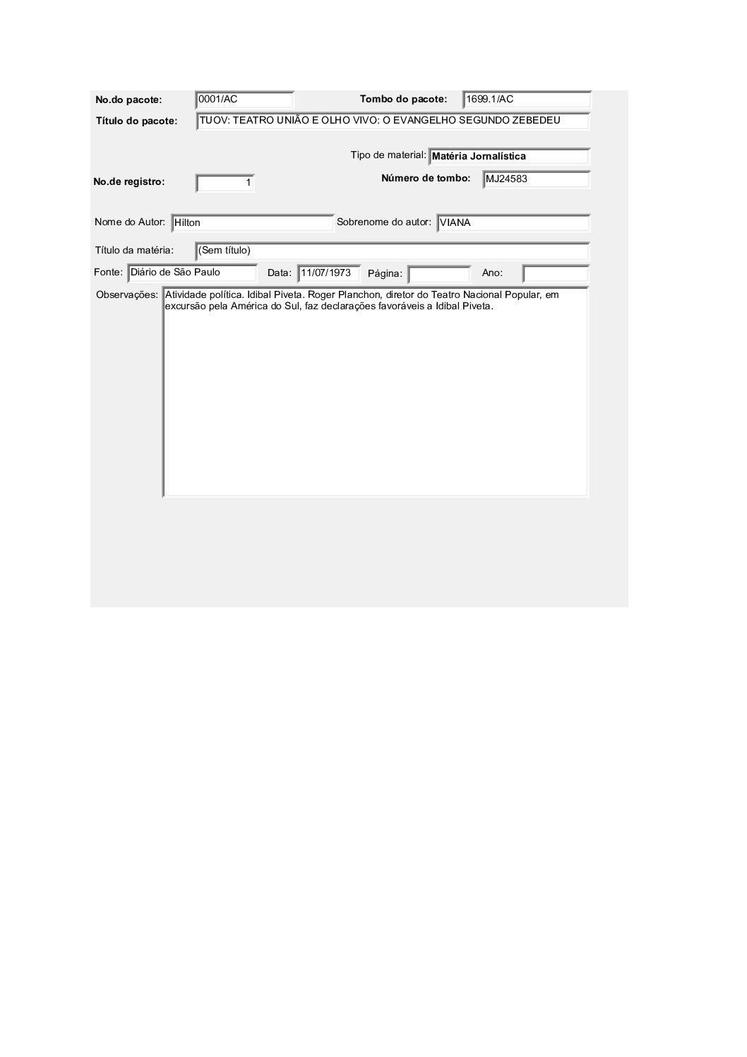 TEATRO POPULAR UNIÃO E OLHO VIVO – DOCUMENTAÇÃO