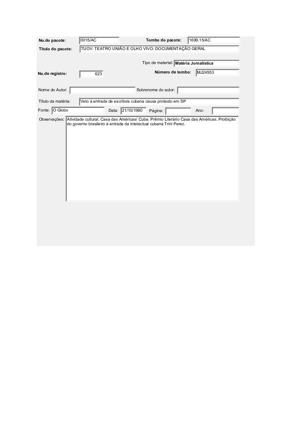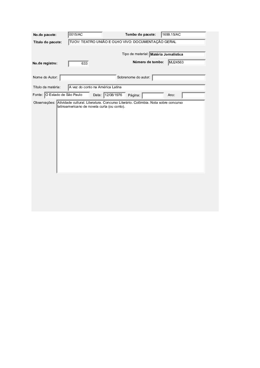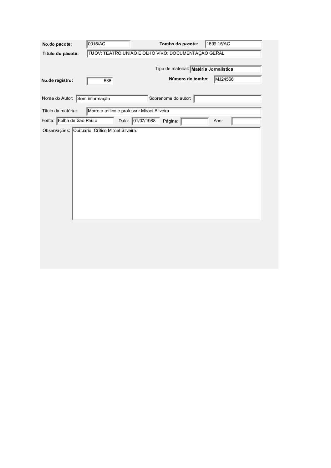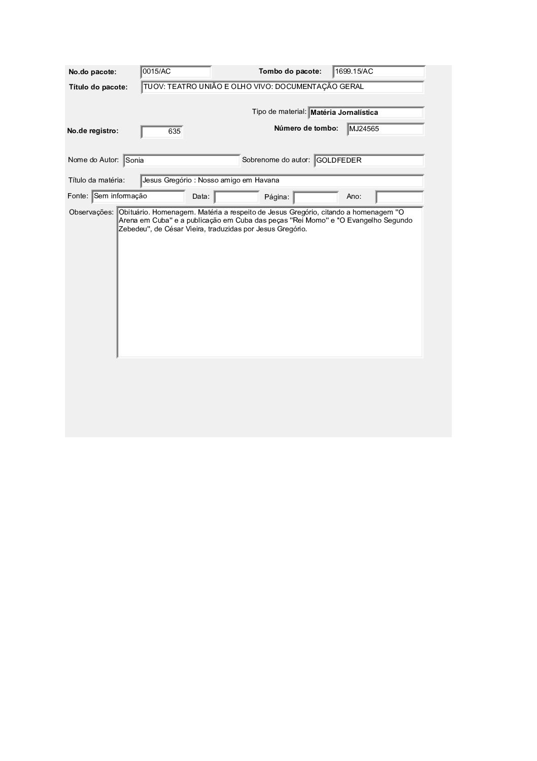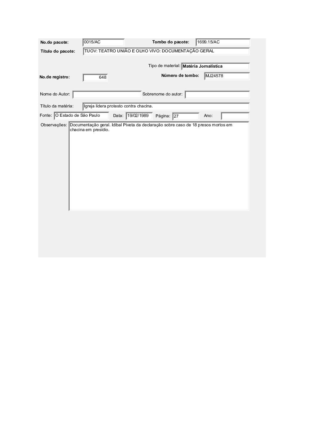 TEATRO POPULAR UNIÃO E OLHO VIVO – DOCUMENTAÇÃO