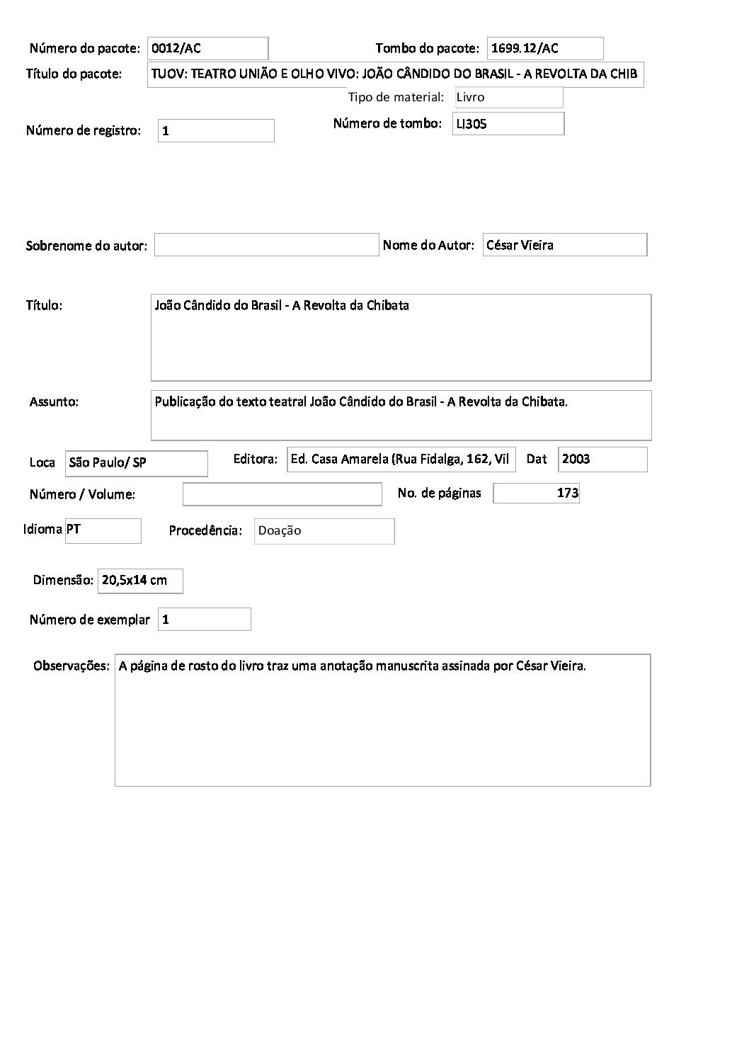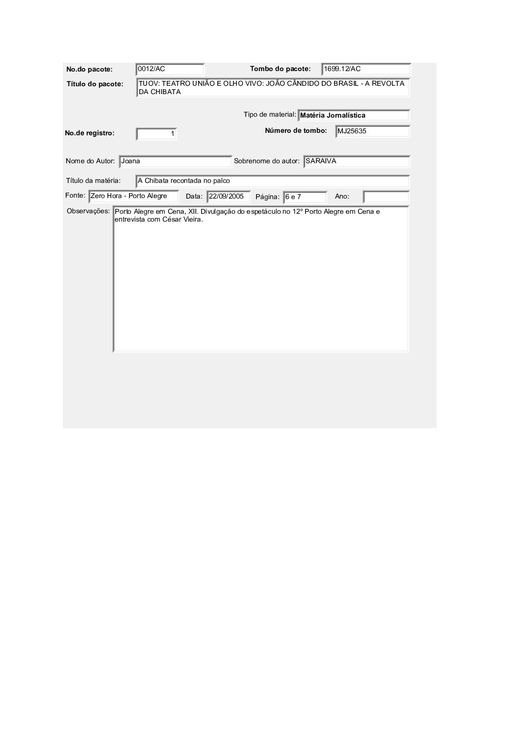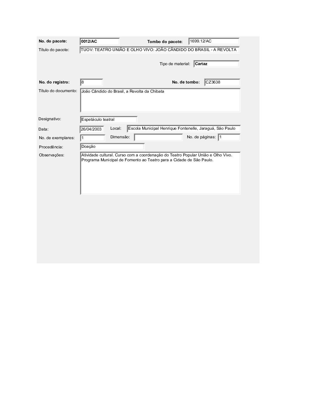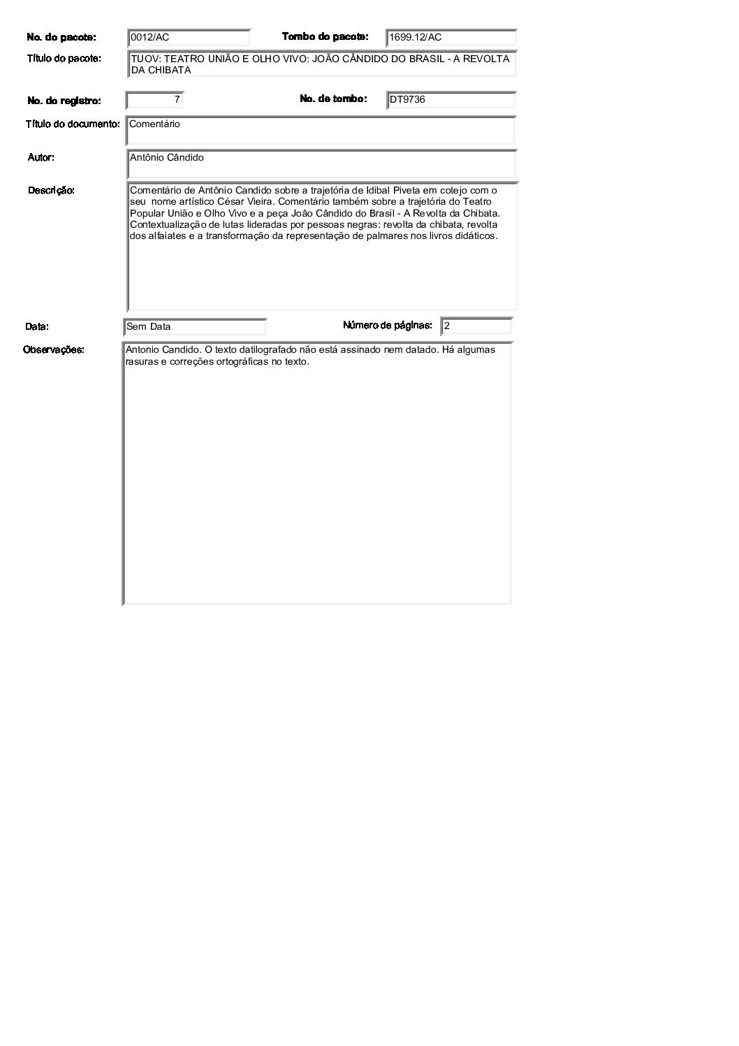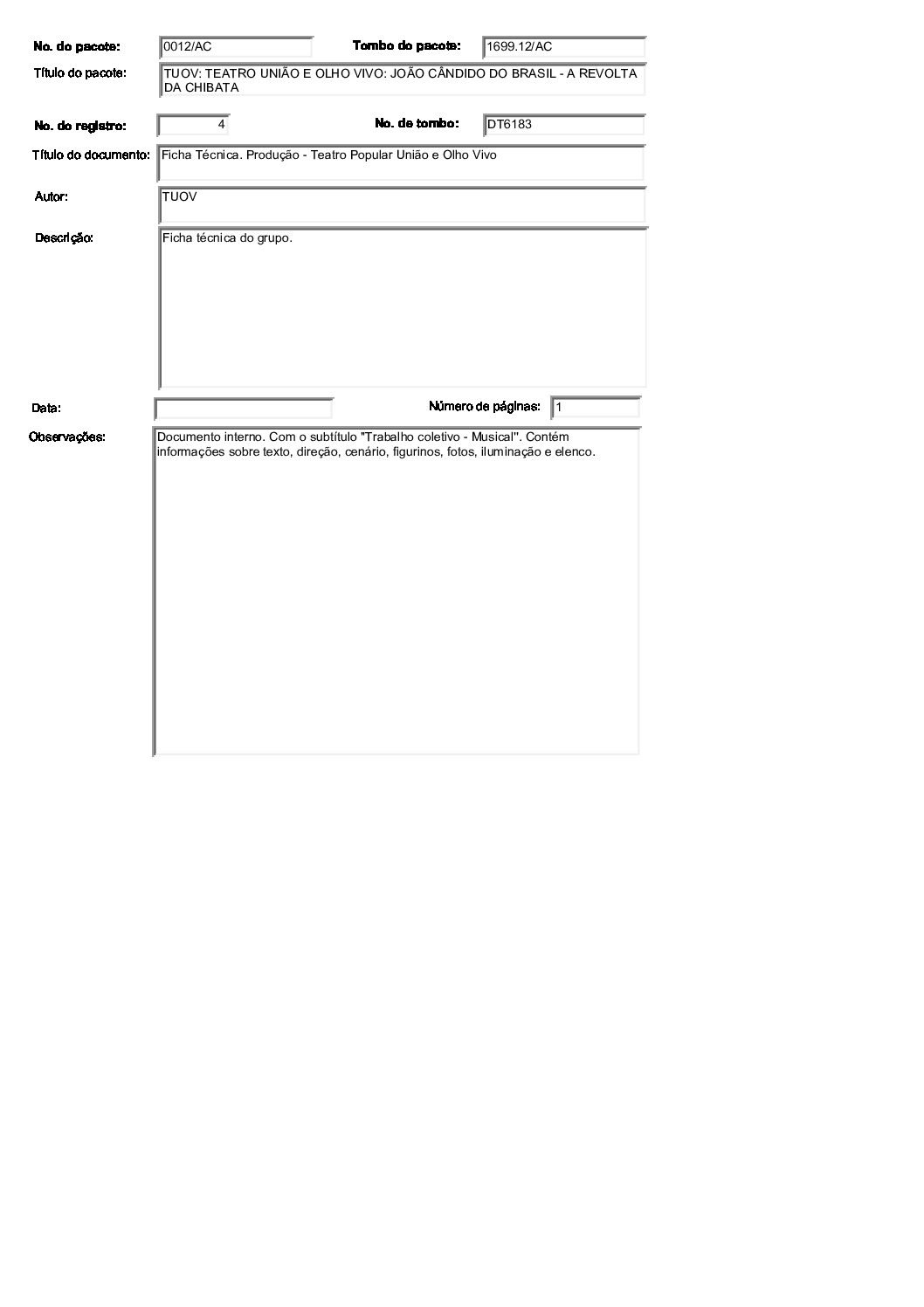 TEATRO UNIÃO E OLHO VIVO: JOÃO CÂNDIDO DO BRASIL – A REVOLTA DA CHIBATA Voltar Documento FT 1699.12 AC Baixar Anexos CO 1629 CZ 3612 CZ 3613 CZ 3632 CZ 3634 CZ 3635 CZ 3636 CZ 3637 CZ 3638 CZ 3664 CZ 4757 DT 4519 DT 4524 DT 4528 DT 6182 DT 6183 DT 6184 DT 9735 DT 9736 DT 9737 DT 9738 FH 1787 FH 1789 FH 1790 FH 1801 FH 1802 FH 1803 FH 1804 FH 1805 FO 116103 FO 116104 FO 116105 FO 116106 FO 116107 FO 116108 FO 116109 FO 116110 FO 116111 FO 116112 FO 116113 FO 116114 FO 116115 FO 116116 FO 116117 FO 116118 FO 116119 FO 116120 FO 116121 FO 116159 FO 116160 FO 116161 FO 116162 FO 116217 FO 116222 FO 116223 FO 116238 FO 116239 FO 116240 FO 116241 FO 116242 FO 116244 FTK 2613 FTK 2614 FTK 2615 FTK 2616 LI 305 LI 429 MJ 25635 MJ 25636 MJ 25637 MJ 25638 MJ 25639 MJ 25640 MJ 25641 MJ 25642 MJ 25643 MJ 25644 MJ 25645 MJ 25646 OT 008 PR 3240 PR 3241 PR 3242 PR 3243 PR 3244 PR 4993 PR 5006 PR 5007 PR 5008 PR 5009 PR 5010 PR 5011 PR 5048 PR 5049 VT208 VT209 VT210 VT211 DESCRIÇÃO Miniatura Compartilhe TÍTULOTEATRO UNIÃO E OLHO VIVO: JOÃO CÂNDIDO DO BRASIL - A REVOLTA DA CHIBATAANO DO EVENTO2001DESCRITIVO / ASSUNTOSARTES CÊNICAS | ESPETÁCULO TEATRAL | FESTIVAL DE TEATRONÚMERO DO PACOTE1699.12EQUIPE TÉCNICAAC - ARTES CÊNICAS Continuar navegando TEATRO UNIÃO E OLHO VIVO: BRASIL QUINHENTÃO TEATRO UNIÃO E OLHO VIVO: A COBRA VAI FUMAR Voltar para a lista de itens