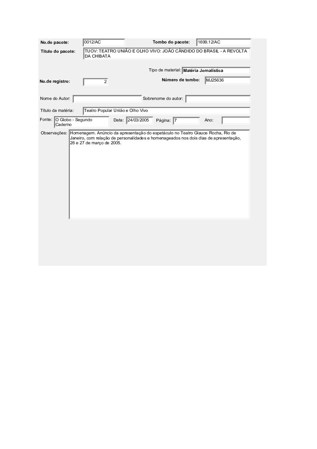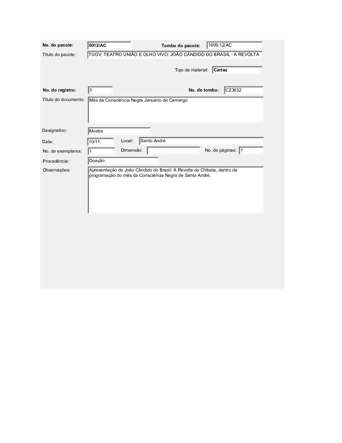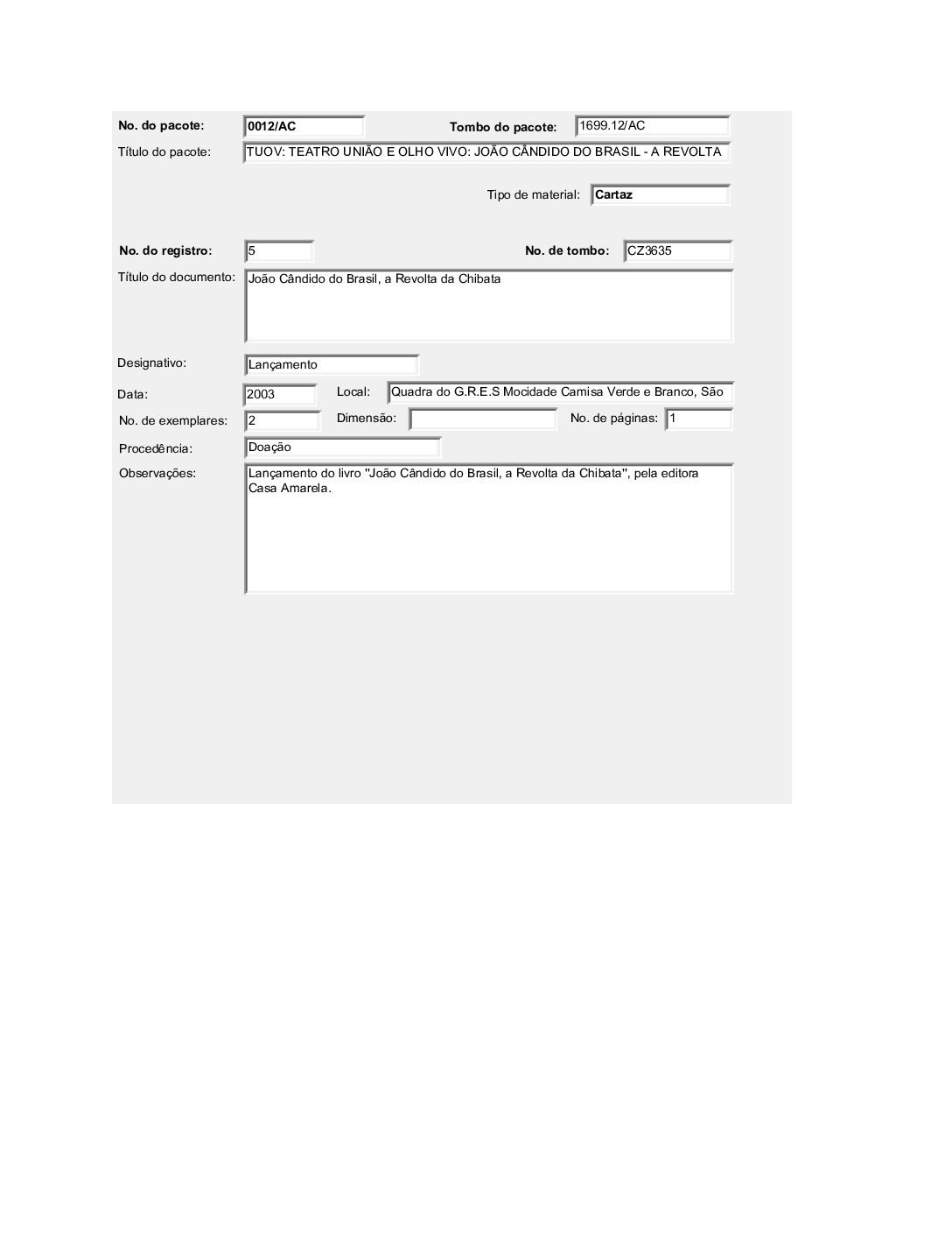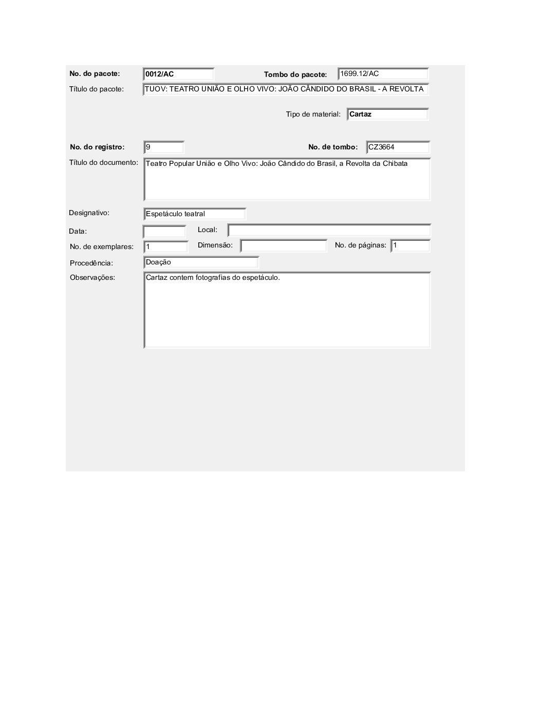 TEATRO UNIÃO E OLHO VIVO: JOÃO CÂNDIDO DO BRASIL – A REVOLTA DA CHIBATA Voltar Documento FT 1699.12 AC Baixar Anexos CO 1629 CZ 3612 CZ 3613 CZ 3632 CZ 3634 CZ 3635 CZ 3636 CZ 3637 CZ 3638 CZ 3664 CZ 4757 DT 4519 DT 4524 DT 4528 DT 6182 DT 6183 DT 6184 DT 9735 DT 9736 DT 9737 DT 9738 FH 1787 FH 1789 FH 1790 FH 1801 FH 1802 FH 1803 FH 1804 FH 1805 FO 116103 FO 116104 FO 116105 FO 116106 FO 116107 FO 116108 FO 116109 FO 116110 FO 116111 FO 116112 FO 116113 FO 116114 FO 116115 FO 116116 FO 116117 FO 116118 FO 116119 FO 116120 FO 116121 FO 116159 FO 116160 FO 116161 FO 116162 FO 116217 FO 116222 FO 116223 FO 116238 FO 116239 FO 116240 FO 116241 FO 116242 FO 116244 FTK 2613 FTK 2614 FTK 2615 FTK 2616 LI 305 LI 429 MJ 25635 MJ 25636 MJ 25637 MJ 25638 MJ 25639 MJ 25640 MJ 25641 MJ 25642 MJ 25643 MJ 25644 MJ 25645 MJ 25646 OT 008 PR 3240 PR 3241 PR 3242 PR 3243 PR 3244 PR 4993 PR 5006 PR 5007 PR 5008 PR 5009 PR 5010 PR 5011 PR 5048 PR 5049 VT208 VT209 VT210 VT211 DESCRIÇÃO Miniatura Compartilhe TÍTULOTEATRO UNIÃO E OLHO VIVO: JOÃO CÂNDIDO DO BRASIL - A REVOLTA DA CHIBATAANO DO EVENTO2001DESCRITIVO / ASSUNTOSARTES CÊNICAS | ESPETÁCULO TEATRAL | FESTIVAL DE TEATRONÚMERO DO PACOTE1699.12EQUIPE TÉCNICAAC - ARTES CÊNICAS Continuar navegando TEATRO UNIÃO E OLHO VIVO: BRASIL QUINHENTÃO TEATRO UNIÃO E OLHO VIVO: A COBRA VAI FUMAR Voltar para a lista de itens