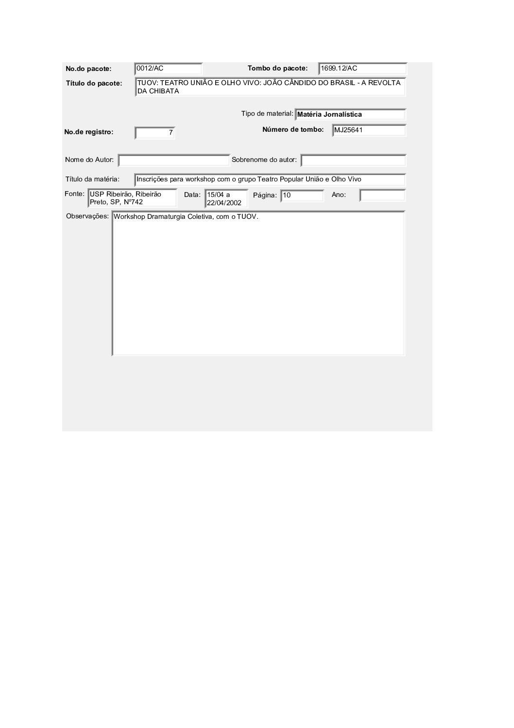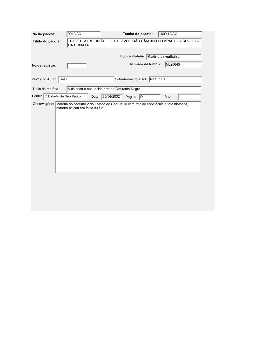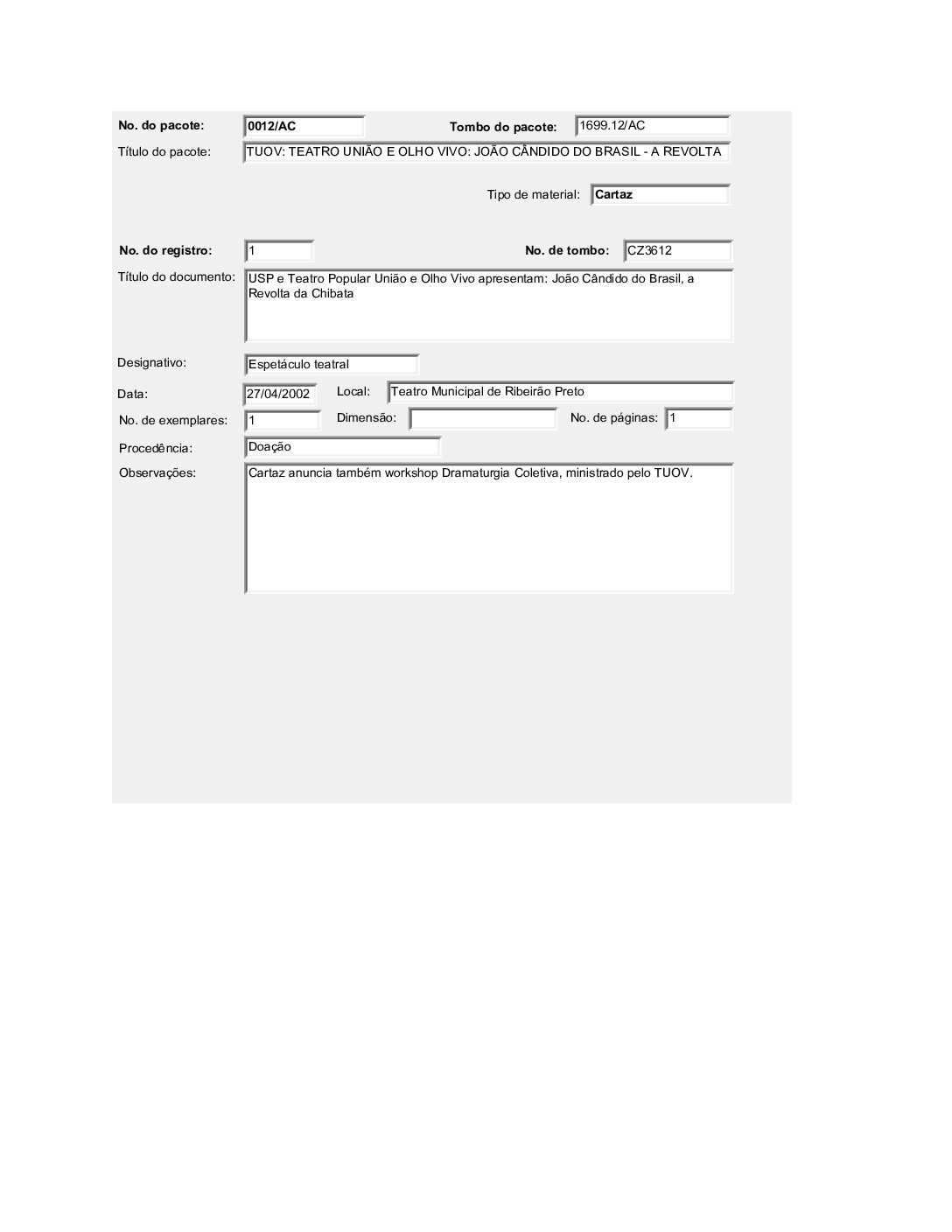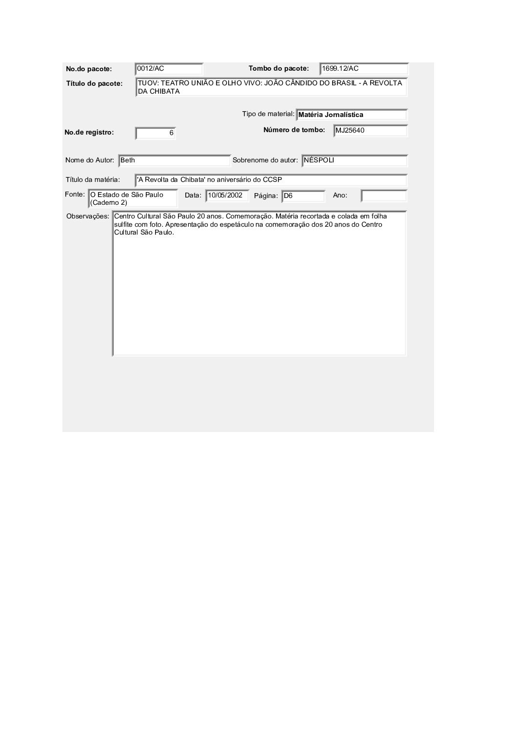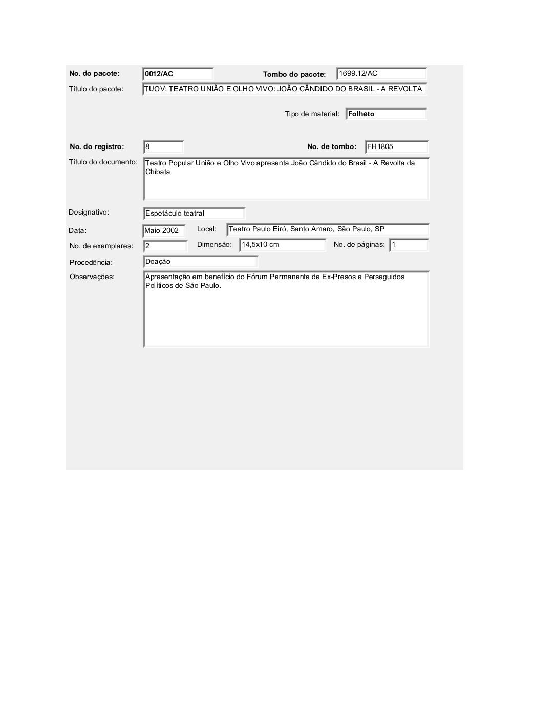 TEATRO UNIÃO E OLHO VIVO: JOÃO CÂNDIDO DO BRASIL – A REVOLTA DA CHIBATA Voltar Documento FT 1699.12 AC Baixar Anexos CO 1629 CZ 3612 CZ 3613 CZ 3632 CZ 3634 CZ 3635 CZ 3636 CZ 3637 CZ 3638 CZ 3664 CZ 4757 DT 4519 DT 4524 DT 4528 DT 6182 DT 6183 DT 6184 DT 9735 DT 9736 DT 9737 DT 9738 FH 1787 FH 1789 FH 1790 FH 1801 FH 1802 FH 1803 FH 1804 FH 1805 FO 116103 FO 116104 FO 116105 FO 116106 FO 116107 FO 116108 FO 116109 FO 116110 FO 116111 FO 116112 FO 116113 FO 116114 FO 116115 FO 116116 FO 116117 FO 116118 FO 116119 FO 116120 FO 116121 FO 116159 FO 116160 FO 116161 FO 116162 FO 116217 FO 116222 FO 116223 FO 116238 FO 116239 FO 116240 FO 116241 FO 116242 FO 116244 FTK 2613 FTK 2614 FTK 2615 FTK 2616 LI 305 LI 429 MJ 25635 MJ 25636 MJ 25637 MJ 25638 MJ 25639 MJ 25640 MJ 25641 MJ 25642 MJ 25643 MJ 25644 MJ 25645 MJ 25646 OT 008 PR 3240 PR 3241 PR 3242 PR 3243 PR 3244 PR 4993 PR 5006 PR 5007 PR 5008 PR 5009 PR 5010 PR 5011 PR 5048 PR 5049 VT208 VT209 VT210 VT211 DESCRIÇÃO Miniatura Compartilhe TÍTULOTEATRO UNIÃO E OLHO VIVO: JOÃO CÂNDIDO DO BRASIL - A REVOLTA DA CHIBATAANO DO EVENTO2001DESCRITIVO / ASSUNTOSARTES CÊNICAS | ESPETÁCULO TEATRAL | FESTIVAL DE TEATRONÚMERO DO PACOTE1699.12EQUIPE TÉCNICAAC - ARTES CÊNICAS Continuar navegando TEATRO UNIÃO E OLHO VIVO: BRASIL QUINHENTÃO TEATRO UNIÃO E OLHO VIVO: A COBRA VAI FUMAR Voltar para a lista de itens