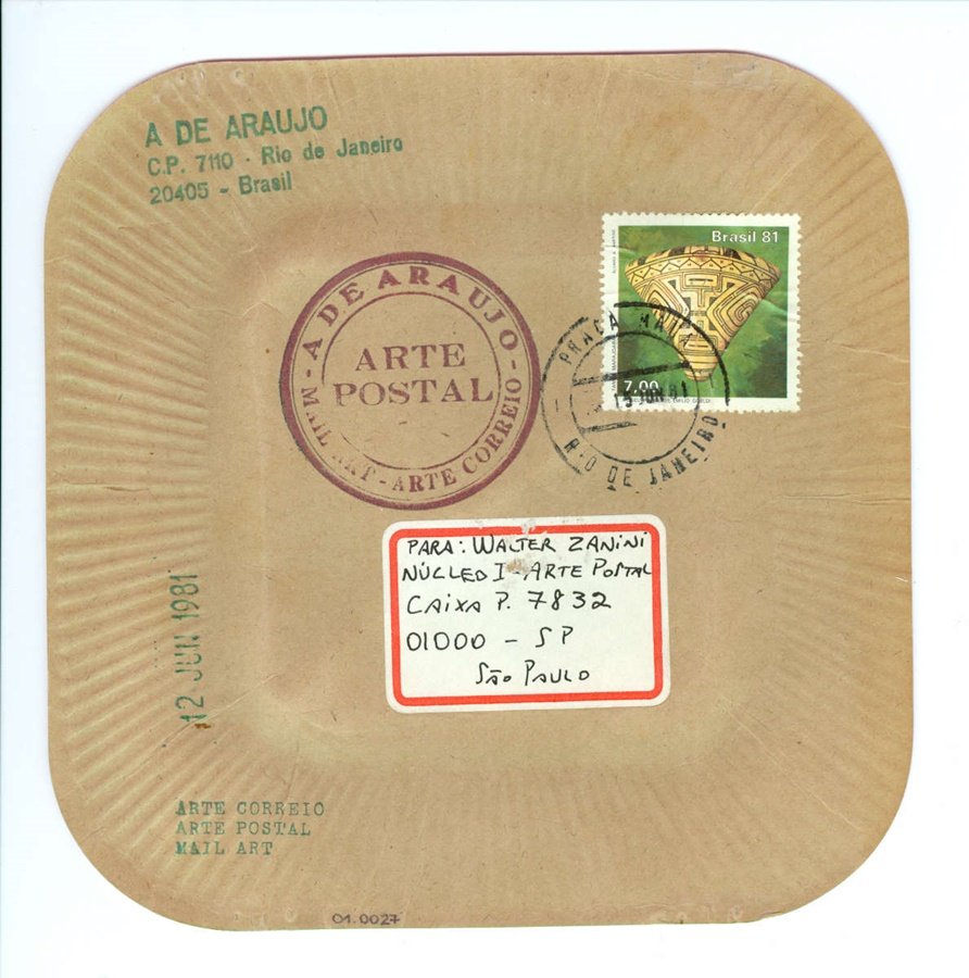 ARTE POSTAL! Voltar Documento 01.0027 Baixar Anexos 01.0027v Metadados Miniatura Compartilhe ArtistaA. de AraujoNomeAvelino de AraujoPaís de origemBrasilDestinatárioWALTER ZANINI - NUCLEO I - ARTE POSTAL - CAIXA P. 7832 - 01000 - SP - SÃO PAULOTítuloARTE POSTAL!Data1981Descrição de técnicaTinta relevo, carimbo, etiqueta, adesivo e caneta hidrográfica. sobre papelTécnicaTinta relevo, carimbo, etiqueta, adesivo e caneta hidrográfica.Suportesobre papelDimensões16,7 x 16,7 cmCategoriaArte PostalSubcategorianão identificadaPalavras-chaveAdesivo | Balão de fala | Carimbo | Intervenção artísticaNº de tombo01.0027ColeçãoXVI Bienal de São PauloProcedênciaFundação Bienal de São PauloModo de aquisiçãoDoaçãoAno de aquisição1984Fotografia / EdiçãoEmilio Carlos Jeronymo Dantas GonçalvesMídiaSim Continuar navegando BANG! HOMENS TRABALHANDO – AMERICA LATINA81 Voltar para a lista de itens