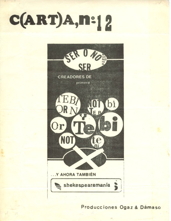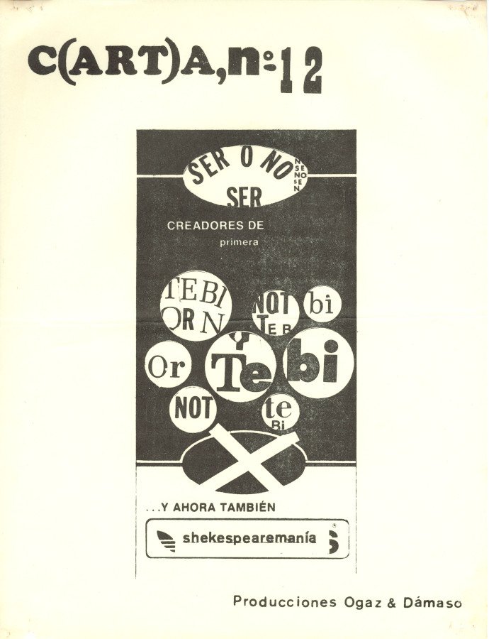 C(ART)A Nº 12 Voltar Documento 01.0531ex1 Baixar Anexos 01.0531ex2 Metadados Miniatura Compartilhe ArtistaDamaso OgazNomeManuel Víctor Sánchez OgazPaís de origemVenezuelaDestinatárioNão possuiTítuloC(ART)A Nº 12DataSem dataDescrição de técnicaFotocópia sobre papelTécnicaFotocópiaSuportesobre papelDimensões27,9 x 21,5 cmCategoriaArte PostalSubcategoriaxerografiaPalavras-chaveFotocópia | ShekespeareNº de tombo01.0531ColeçãoXVI Bienal de São PauloProcedênciaFundação Bienal de São PauloModo de aquisiçãoDoaçãoAno de aquisição1984MídiaSim Continuar navegando C(ART)A Nº 11 FIRST TRANSFORMATION Voltar para a lista de itens