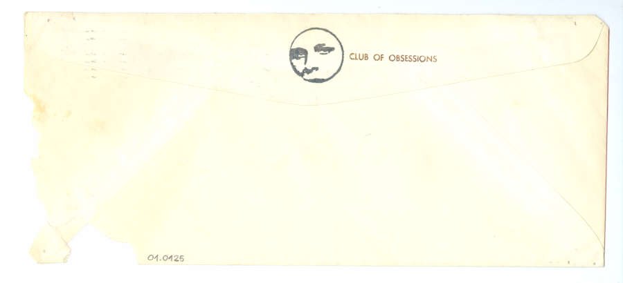 CLUB OF OBSESSIONS Voltar Documento 01.0125 Baixar Anexos 01.0125v Metadados Miniatura Compartilhe ArtistaAlex TorridZone IglooNomeAlex IglooPaís de origemNão identificadoDestinatárioNucleus I - Mail Art - XVI Bienal de São Paulo - Caixa Postal 7832 - 01000 - São Paulo - SP. - Brasil.TítuloCLUB OF OBSESSIONSDataSem dataDescrição de técnicaCarimbo e caneta hidrográfica sobre papelTécnicaCarimbo e caneta hidrográficaSuportesobre papelDimensões10,5 x 24,2 cmNº de partes2CategoriaArte PostalSubcategoriaenvelopePalavras-chaveCarimboNº de tombo01.0125ColeçãoXVI Bienal de São PauloProcedênciaFundação Bienal de São PauloModo de aquisiçãoDoaçãoAno de aquisição1984Fotografia / EdiçãoEmilio Carlos Jeronymo Dantas GonçalvesMídiaSim Continuar navegando Sem título Sem título Voltar para a lista de itens