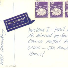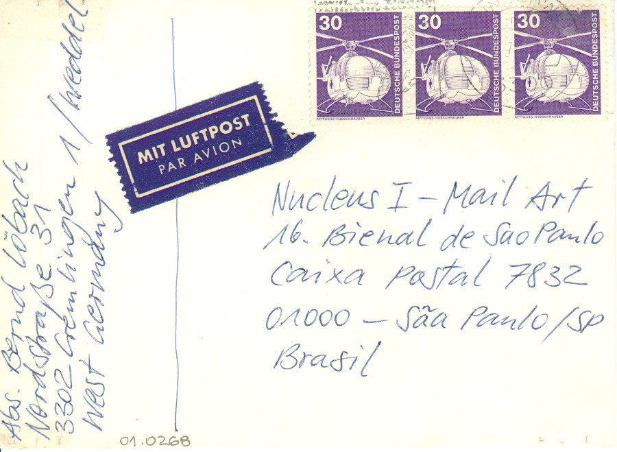 Hinweis-Postkarte 22/81 Voltar Documento 01.0268 Baixar Anexos 01.0268v Metadados Miniatura Compartilhe ArtistaBernd LöbachNomeBernd LöbachPaís de origemAlemanhaDestinatárioNucleus I - Mail Art - 16. Bienal de São Paulo - Caixa Postal 7832 - 01000 - São Paulo / SP - Brasil.TítuloHinweis-Postkarte 22/81Data1981Descrição de técnicaFotocópia e caneta esferográfica sobre papelTécnicaFotocópia e caneta esferográficaSuportesobre papelDimensões10,5 x 14,5 cmCategoriaArte PostalSubcategoriacartão postalPalavras-chaveIndústria | PoluiçãoNº de tombo01.0268ColeçãoXVI Bienal de São PauloProcedênciaFundação Bienal de São PauloModo de aquisiçãoDoaçãoAno de aquisição1984MídiaSim Continuar navegando Our workshop Hinweis-Postkarte 23/81 Voltar para a lista de itens