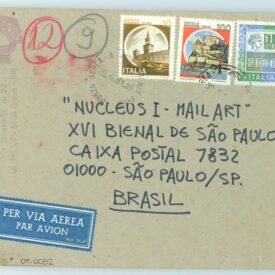 L’ARTE HA BISOGNO DI ESSERE VISSUTA Voltar Documento 01.0082 Baixar Anexos 01.0082v Metadados Miniatura Compartilhe ArtistaAlberto GallinganiNomeAlberto GallinganiPaís de origemItáliaDestinatárioNUCLEUS I - MAIL ART - XVI BIENAL DE SÃO PAULO - CAIXA POSTAL 7832 - 01000 - SÃO PAULO / SP. - BRASILTítuloL'ARTE HA BISOGNO DI ESSERE VISSUTAData1981Descrição de técnicaFotografia P/B, caneta hidrográfica, carimbo e grafite. sobre papelTécnicaFotografia P/B, caneta hidrográfica, carimbo e grafite.Suportesobre papelDimensões11,8 x 14,9 cmCategoriaArte PostalSubcategoriacartão postalPalavras-chaveFotografia | Intervenção artísticaNº de tombo01.0082ColeçãoXVI Bienal de São PauloProcedênciaFundação Bienal de São PauloModo de aquisiçãoDoaçãoAno de aquisição1984Fotografia / EdiçãoEmilio Carlos Jeronymo Dantas GonçalvesMídiaSim Continuar navegando L’ARTE HA BISOGNO DI ESSERE VISSUTA L’ARTE HA BISOGNO DI ESSERE VISSUTA Voltar para a lista de itens