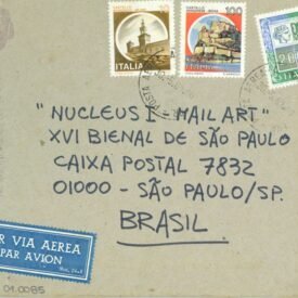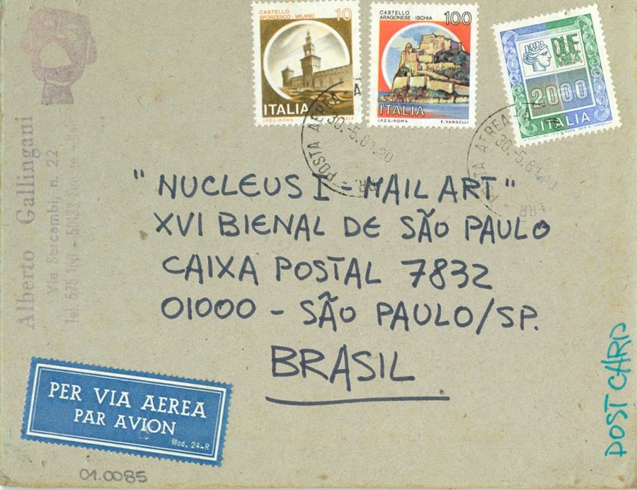 L’ARTE HA BISOGNO DI ESSERE VISSUTA Voltar Documento 01.0085 Baixar Anexos 01.0085v Metadados Miniatura Compartilhe ArtistaAlberto GallinganiNomeAlberto GallinganiPaís de origemItáliaDestinatárioNUCLEUS I - MAIL ART - XVI BIENAL DE SÃO PAULO - CAIXA POSTAL 7832 - 01000 - SÃO PAULO / SP. - BRASIL.TítuloL'ARTE HA BISOGNO DI ESSERE VISSUTAData1981Descrição de técnicaFotografia P/B, caneta hidrográfica, carimbo e colagem sobre papelTécnicaFotografia P/B, caneta hidrográfica, carimbo e colagemSuportesobre papelDimensões11,7 x 15 cmCategoriaArte PostalSubcategoriacartão postalPalavras-chaveColagem | Fotografia | Intervenção artísticaNº de tombo01.0085ColeçãoXVI Bienal de São PauloProcedênciaFundação Bienal de São PauloModo de aquisiçãoDoaçãoAno de aquisição1984Fotografia / EdiçãoEmilio Carlos Jeronymo Dantas GonçalvesMídiaSim Continuar navegando L’ARTE HA BISOGNO DI ESSERE VISSUTA L’ARTE HA BISOGNO DI ESSERE VISSUTA Voltar para a lista de itens