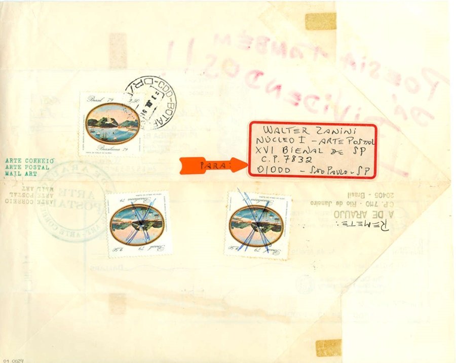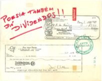 POESIA TAMBÉM DÁ DIVIDENDOS!! Voltar Documento 01.0024 Baixar Anexos 01.0024v Metadados Miniatura Compartilhe ArtistaA. de AraujoNomeAvelino de AraujoPaís de origemBrasilDestinatárioWALTER ZANINI - NÚCLEO I - ARTE POSTAL - XVI BIENAL DE SP - C.P. 7832 - 01000 - SÃO PAULO - SPTítuloPOESIA TAMBÉM DÁ DIVIDENDOS!!Data1981Descrição de técnicaCaneta hidrográfica, fotocópia, carimbo, adesivo, etiqueta e dobradura. sobre papelTécnicaCaneta hidrográfica, fotocópia, carimbo, adesivo, etiqueta e dobradura.Suportesobre papelDimensões21,5 x 26,5 cmCategoriaArte PostalSubcategorianão identificadaPalavras-chaveAdesivo | Carimbo | Cheque bancário | DobraduraNº de tombo01.0024ColeçãoXVI Bienal de São PauloProcedênciaFundação Bienal de São PauloModo de aquisiçãoDoaçãoAno de aquisição1984Fotografia / EdiçãoEmilio Carlos Jeronymo Dantas GonçalvesMídiaSim Continuar navegando DA SÉRIE EXERCÍCIOS DE CALIGRAFIA BANG! Voltar para a lista de itens