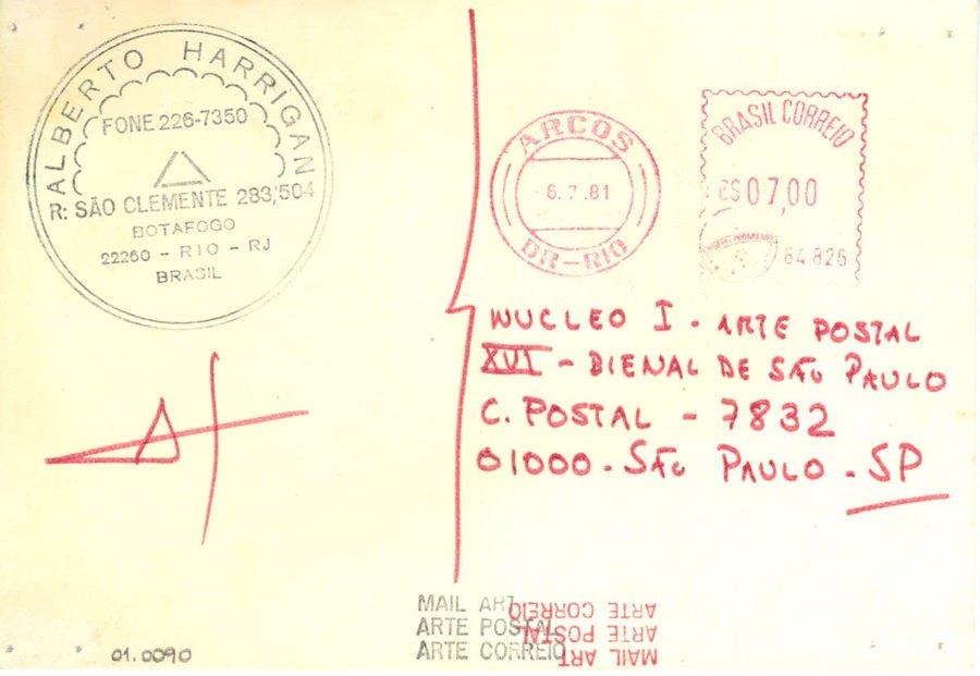 S O S S O S S O S S O S Voltar Documento 01.0090 Baixar Anexos 01.0090v Metadados Miniatura Compartilhe ArtistaAlberto HarriganNomeAlberto HarriganPaís de origemBrasilDestinatárioNUCLEO I - ARTE POSTAL - XVI BIENAL DE SÃO PAULO - C. POSTAL - 7832 01000 - SÃO PAULO - SPTítuloS O S S O S S O S S O SData1981Descrição de técnicaCarimbo, caneta hidrográfica e giz de cera sobre papelTécnicaCarimbo, caneta hidrográfica e giz de ceraSuportesobre papelDimensões10,7 x 15,6 cmCategoriaArte PostalSubcategoriacartão postalPalavras-chaveCarimboNº de tombo01.0090ColeçãoXVI Bienal de São PauloProcedênciaFundação Bienal de São PauloModo de aquisiçãoDoaçãoAno de aquisição1984Fotografia / EdiçãoEmilio Carlos Jeronymo Dantas GonçalvesMídiaSim Continuar navegando S O S Sem título Voltar para a lista de itens