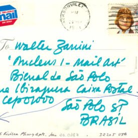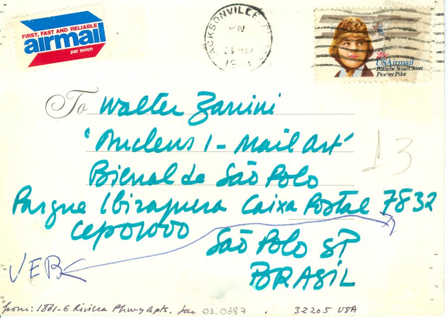 Sem título Voltar Documento 01.0387 Baixar Anexos 01.0387v Metadados Miniatura Compartilhe ArtistaClaude PelieuNomeClaude Pelieu-WashburnPaís de origemEstados UnidosDestinatárioWalter Zanini - 'Nucleus I - Mail Art' - Bienal de São Polo - Parque Ibirapuera - Caixa Postal 7832 - cep 01000 - São Polo - SP - BRASIL.TítuloSem títuloData1981Descrição de técnicaOffset, colagem, caneta esferográfica e hidrográfica sobre papelTécnicaOffset, colagem, caneta esferográfica e hidrográficaSuportesobre papelDimensões15,2 x 10,7 cmCategoriaArte PostalSubcategoriacartão postalPalavras-chaveColagem | Comida | ObjetoNº de tombo01.0387ColeçãoXVI Bienal de São PauloProcedênciaFundação Bienal de São PauloModo de aquisiçãoDoaçãoAno de aquisição1984MídiaSim Continuar navegando Sem título Sem título Voltar para a lista de itens