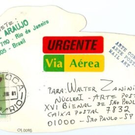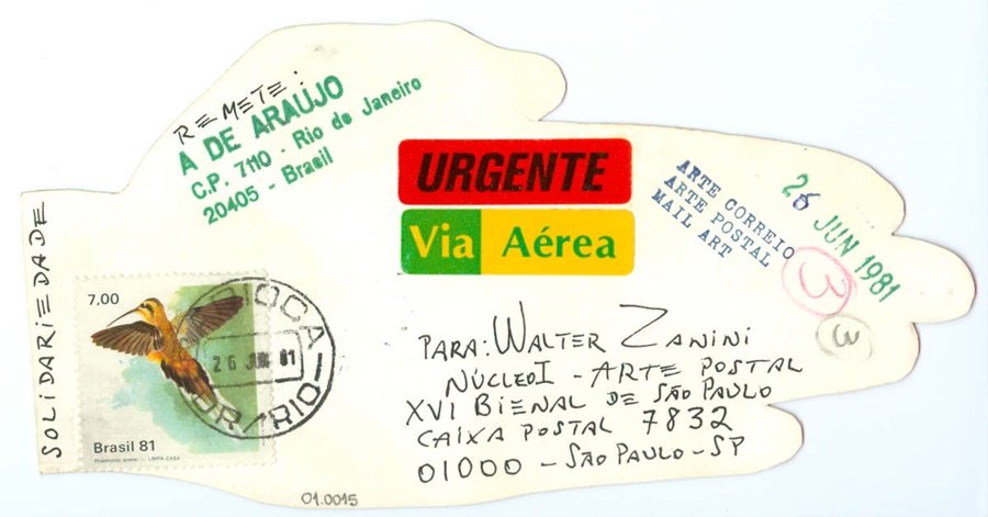 Sem título Voltar Documento 01.0015 Baixar Anexos 01.0015v Metadados Miniatura Compartilhe ArtistaA. de AraujoNomeAvelino de AraujoPaís de origemBrasilDestinatárioWALTER ZANINI - NUCLEO I - ARTE POSTAL - XVI BIENAL DE SÃO PAULO - CAIXA POSTAL 7832 - 01000 - SÃO PAULO -SPTítuloSem títuloData1981Descrição de técnicaCarimbo, adesivo, caneta hidrográfica e selo sobre papelTécnicaCarimbo, adesivo, caneta hidrográfica e seloSuportesobre papelDimensões9,5 x 18,2 cmCategoriaArte PostalSubcategoriacartão postalPalavras-chaveAdesivo | Carimbo | homenagemNº de tombo01.0015ColeçãoXVI Bienal de São PauloProcedênciaFundação Bienal de São PauloModo de aquisiçãoDoaçãoAno de aquisição1984Fotografia / EdiçãoEmilio Carlos Jeronymo Dantas GonçalvesMídiaSim Continuar navegando Sem título SUPER-HERÓIS Voltar para a lista de itens