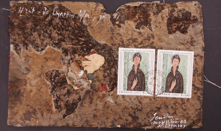 Sem título Voltar Documento 01.1636 Baixar Anexos 01.1636v Metadados Miniatura Compartilhe ArtistaMax WimmerNomeMax WimmerPaís de origemFrançaDestinatárioSão Paulo / SP 01000 - Nucleus Mail - BRASIL - Caixa Postal 7832TítuloSem títuloData1981Descrição de técnicaNanquim, cera, linha, colagem e não identificado sobre papelTécnicaNanquim, cera, linha, colagem e não identificadoSuportesobre papelDimensões14,2 x 22,0 cmCategoriaArte PostalSubcategorianão identificadaPalavras-chaveCartão Postal | Colagem | Frase | ModiglianiNº de tombo01.1636ColeçãoXVI Bienal de São PauloProcedênciaFundação Bienal de São PauloModo de aquisiçãoDoaçãoAno de aquisição1984MídiaSim Continuar navegando Sem título Sem título Voltar para a lista de itens