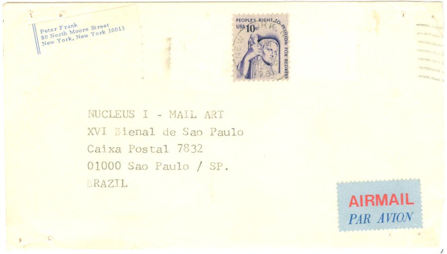 Sem título Voltar Documento 01.2002 Baixar Metadados Miniatura Compartilhe ArtistaPeter FrankNomePeter FrankPaís de origemEstados UnidosDestinatárioNUCLEUS I - MAIL ART - XVI Bienal de Sao Paulo - Caixa Postal 7832 - 01000 Sao Paulo / SP. BRAZILTítuloSem títuloData1981Descrição de técnicaEtiqueta, offset e datilografia sobre papelTécnicaEtiqueta, offset e datilografiaSuportesobre papelDimensões9,2 x 16,4 cmCategoriaArte PostalSubcategoriaenvelopePalavras-chaveEtiquetaNº de tombo01.2002ColeçãoXVI Bienal de São PauloProcedênciaFundação Bienal de São PauloModo de aquisiçãoDoaçãoAno de aquisição1984MídiaSim Continuar navegando ECO LOGIA Ice Cube Voltar para a lista de itens