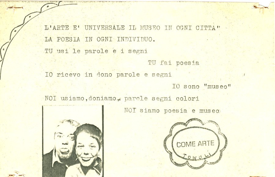 Sem título Voltar Documento 01.2455 Baixar Metadados Miniatura Compartilhe ArtistaGianni TonoliNomeGianni TonoliPaís de origemNão identificadoDestinatárioNão possuiTítuloSem títuloDataSem dataDescrição de técnicaFotocópia sobre papelTécnicaFotocópiaSuportesobre papelDimensões12,0 x 18,4 cmCategoriaArte PostalSubcategoriaxerografiaPalavras-chaveFrase | PoemaNº de tombo01.2455ColeçãoXVI Bienal de São PauloProcedênciaFundação Bienal de São PauloModo de aquisiçãoDoaçãoAno de aquisição1984MídiaSim Continuar navegando ZERREISS – PROBE ITAQUATIARA Voltar para a lista de itens