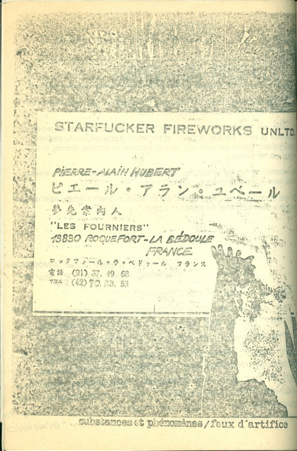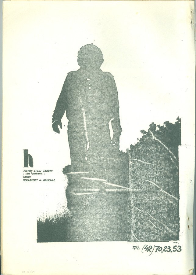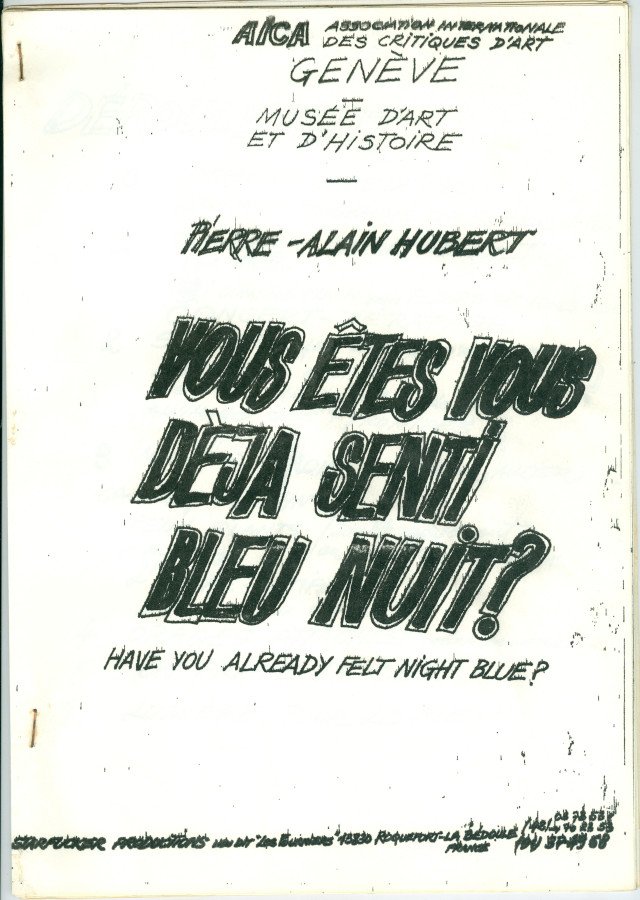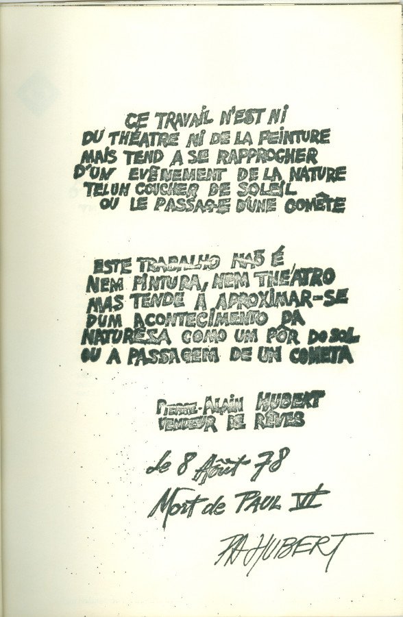 VOUS ÊTES VOUS DÈJA SENTI BLEU NUIT? Voltar Documento 01.2031 Baixar Anexos 01.2031p1 01.2031p10 01.2031p11 01.2031p12 01.2031p13 01.2031p14 01.2031p15 01.2031p16 01.2031p17 01.2031p18 01.2031p19 01.2031p2 01.2031p20 01.2031p21 01.2031p22 01.2031p3 01.2031p4 01.2031p5 01.2031p6 01.2031p7 01.2031p8 01.2031p9 Metadados Miniatura Compartilhe ArtistaPierre-Alain HubertNomePierre-Alain HubertPaís de origemFrançaDestinatárioNão possuiTítuloVOUS ÊTES VOUS DÈJA SENTI BLEU NUIT?DataSem dataDescrição de técnicaFotocópia, offset e grampo sobre papelTécnicaFotocópia, offset e grampoSuportesobre papelDimensões29,8 x 21,4 cmCategoriaArte PostalSubcategorialivro de artistaPalavras-chaveTexto | XerografiaNº de tombo01.2031ColeçãoXVI Bienal de São PauloProcedênciaFundação Bienal de São PauloModo de aquisiçãoDoaçãoAno de aquisição1984MídiaSim Continuar navegando THE STARFUCKER IMAGES LATENTES Voltar para a lista de itens