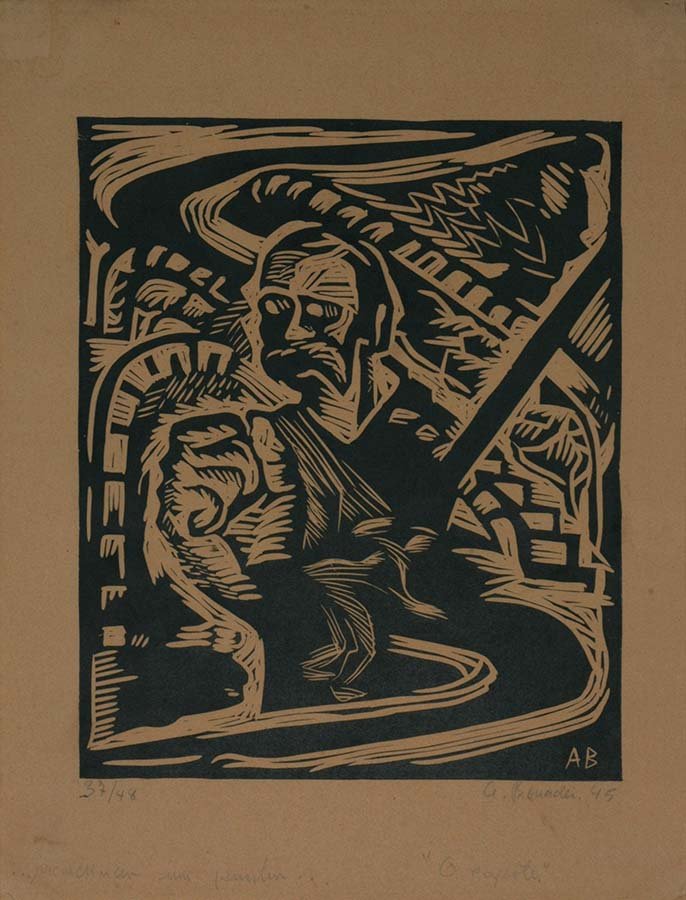 … brandindo um punho…- Ilustração para O capote de Nicolau Gogol Voltar Documento 0000.000.267 Baixar Metadados Miniatura Compartilhe ArtistaAldo BonadeiNomeAldo Cláudio Felipe BonadeiTítulo... brandindo um punho...- Ilustração para O capote de Nicolau GogolData1945Descrição de técnicalinoleogravura sobre papelTécnicalinoleogravuraSuportesobre papelDimensões28,5 x 21,6 cmCategoriaGravuraNº de tombo0000.000.267Fotografia / EdiçãoJoão Mussolin e Sossô Parma / Luciana NicolauMídiaSimProcedênciaAldo BonadeiModo de aquisiçãodoaçãoAno de aquisição1945 Continuar navegando … uma outra sombra… – Ilustração para O capote de Nicolau Gogol … brandindo um punho… -Ilustração para O capote de Nicolau Gogol Voltar para a lista de itens
