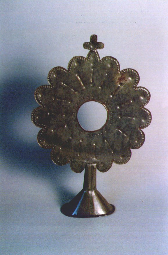 BÉBÉ DE IEMANJÁ Voltar Documento n066 Baixar Metadados Miniatura Compartilhe DescriçãoESPÉCIE DE CUSTÓDIA DE LATÃO. UM CÍRCULO RECORTADO, COM UMA ABERTURA CIRCULAR AO CENTRO, ENCIMADO POR UMA CRUZ, SUPORTADO POR PEQUENA COLUNA E PEDESTALTítuloBÉBÉ DE IEMANJÁTipo de documentoobjetoLocalRECIFE (PE)DataFEVEREIRO A JULHO DE 1938FabricaçãoNÃO INDICADAUtilização2- XANGÔ 3- EM CIMA DO PEGÍ, POR CAUSA DA FORMA.ColhedorMISSÃO DE PESQUISAS FOLCLÓRICASMídiasimCódigo / TomboOBJ066Dimensões / DuraçãoCOMPRIMENTO TOTAL APROXIMADO: 30 CM; DIÂMETRO DO CÍRCULO: 20 CM; DA ABERTURA CIRCULAR: 5 CM; ALTURA DO PEDESTAL: 9,5 CM Continuar navegando QUARTINHA BÉBÉ DE OXUM Voltar para a lista de itens