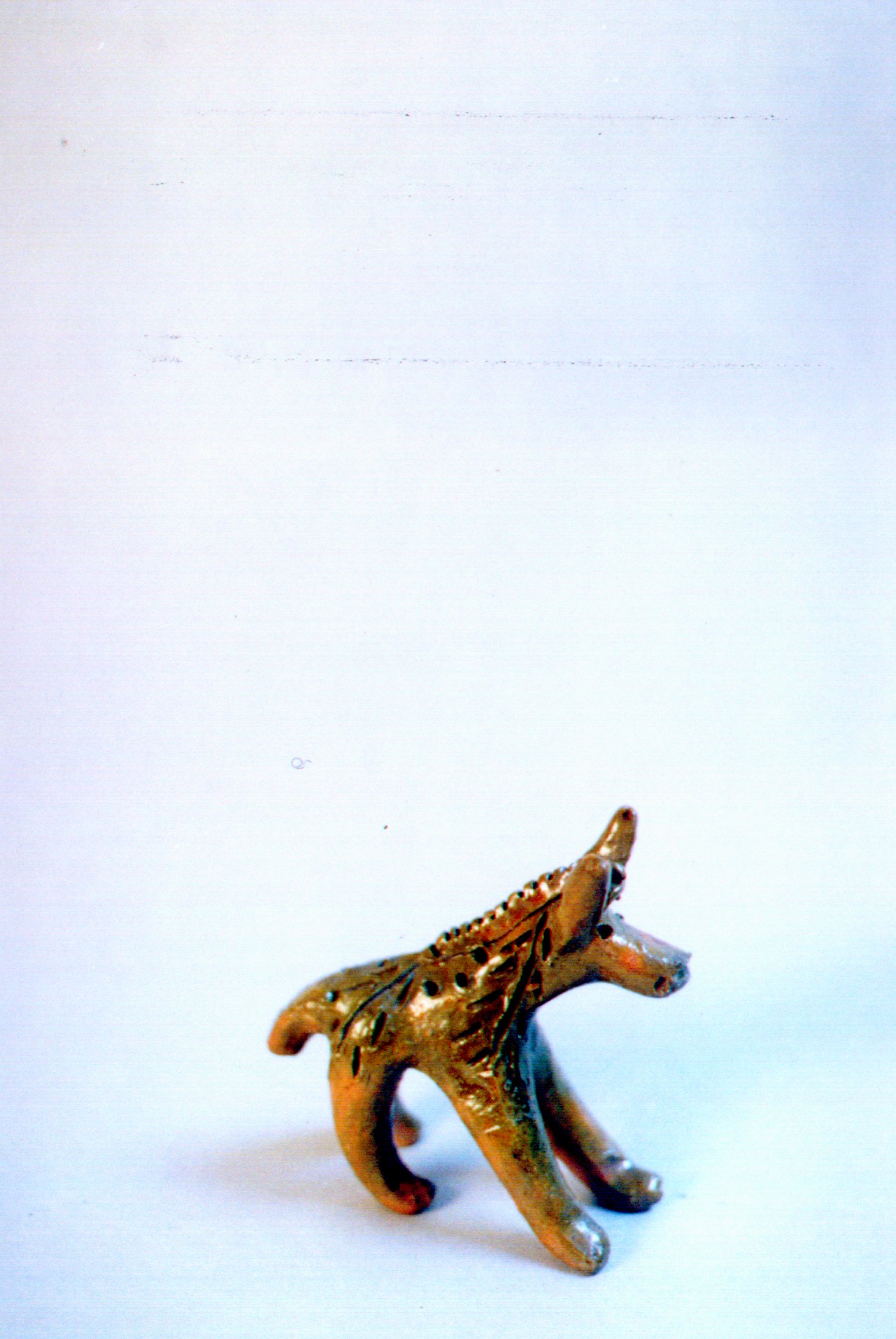 BURRO (CERÂMICA) Voltar Documento n667 Baixar Metadados Miniatura Compartilhe DescriçãoBURRO DE BARRO, PINTADO DE VERDE. FUROS E CÓRTES NO CORPO. OLHOS E VENTAS REPRESENTADOS POR FUROS, BOCA POR UM CÓRTE. RABO PARCIALMENTE QUEBRADOTítuloBURRO (CERÂMICA)Tipo de documentoobjetoLocalCAMPINA GRANDE (PB)DataFEVEREIRO A JULHO DE 1938ColhedorMISSÃO DE PESQUISAS FOLCLÓRICASMídiasimCódigo / TomboOBJ667Dimensões / DuraçãoCOMPRIMENTO APROXIMADO DO CORPO: 7 CM ; ALTURA: 7 CM ; ALTURA ATÉ ORELHAS: 10 CM Continuar navegando BODE (CERÂMICA) PIFE Voltar para a lista de itens
