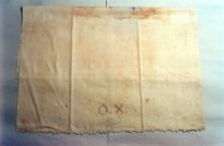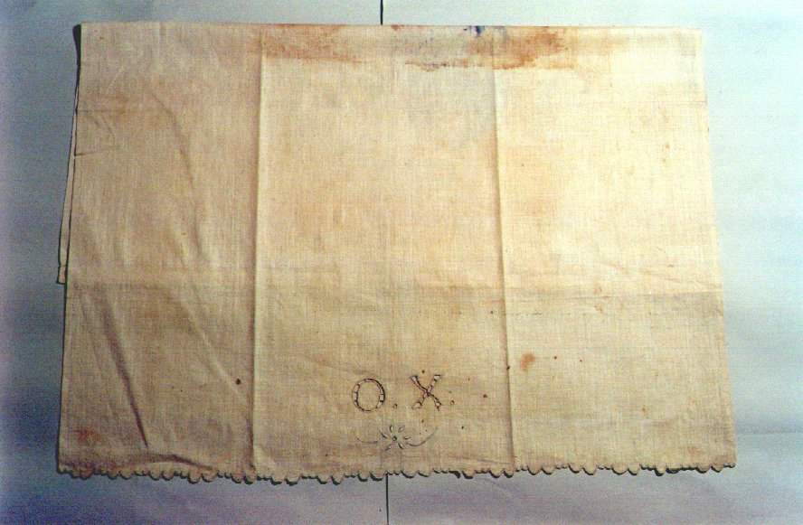 PANO PARA COBRIR FETICHES Voltar Documento n515 Baixar Metadados Miniatura Compartilhe DescriçãoPANO DE ALGODÃO BRANCO TENDO BORDADO À MÃO: BICOS, BAINHA, UMA FLOR E AS LETRAS ""O. X""TítuloPANO PARA COBRIR FETICHESTipo de documentoobjetoLocalRECIFE (PE) (?)DataFEVEREIRO A JULHO DE 1938FabricaçãoNÃO INDICADA.Utilização2- XANGÔ?ColhedorMISSÃO DE PESQUISAS FOLCLÓRICASMídiasimCódigo / TomboOBJ515Dimensões / Duração92 CM X 81 CM Continuar navegando PANO PARA COBRIR FETICHES PANO PARA COBRIR FETICHES Voltar para a lista de itens