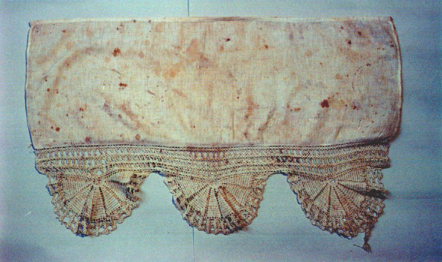 PANO PARA COBRIR FETICHES Voltar Documento n520 Baixar Metadados Miniatura Compartilhe DescriçãoPANO DE ALGODÃO BRANCO, COM BICO DE CROCHÊ EM UM DOS LADOSTítuloPANO PARA COBRIR FETICHESTipo de documentoobjetoLocalRECIFE (PE) (?)DataFEVEREIRO A JULHO DE 1938FabricaçãoNÃO INDICADA.Utilização2- XANGÔ?ColhedorMISSÃO DE PESQUISAS FOLCLÓRICASMídiasimCódigo / TomboOBJ520Dimensões / Duração158 CM X 47 CM Continuar navegando MILAGRE PANO PARA COBRIR FETICHES Voltar para a lista de itens