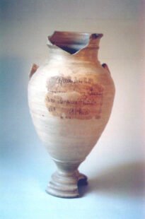 QUARTINHA Voltar Documento n033 Baixar Metadados Miniatura Compartilhe DescriçãoVASO DE BARRO, EM FÓRMA DE ÂNFORATítuloQUARTINHATipo de documentoobjetoLocal(BA)Data26 DE JANEIRO DE 1937FabricaçãoSAUBARA?(BAHIA)Utilização2 - PÉGIS DOS CANDOMBLÉS GÊGE-NAGÔS. 5-RECIPIENTES DE ÁGUA-BENTA.ColhedorCAMARGO GUARNIERIMídiasimCódigo / TomboOBJ033Dimensões / DuraçãoALTURA: 29,4 CM; DIAMETRO DA BOCA: 9,5 CM; DA BASE: 8,5 CM Continuar navegando QUARTINHA BARANGANDAN OU MISSANGA DE OXALÁ Voltar para a lista de itens