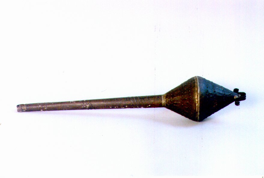 XÉRE DE XANGÔ Voltar Documento n083 Baixar Metadados Miniatura Compartilhe DescriçãoDOIS CONES SOLDADOS PELAS BASES, COM UM CABO TERMINADO EM ALÇA, ENCIMADOS POR UM PEQUENO ELEMENTO DECORATIVO. DECORADO A PONTOS E TRAÇOS GRAVADOS. LATÃOTítuloXÉRE DE XANGÔTipo de documentoobjetoLocalRECIFE (PE)DataFEVEREIRO A JULHO DE 1938Utilização2- XANGÔColhedorMISSÃO DE PESQUISAS FOLCLÓRICASMídiasimCódigo / TomboOBJ083Dimensões / DuraçãoCOMPRIMENTO: 38 CM Continuar navegando XÉRE DE XANGÔ CAMPA OU XÉRE DE OXUM Voltar para a lista de itens