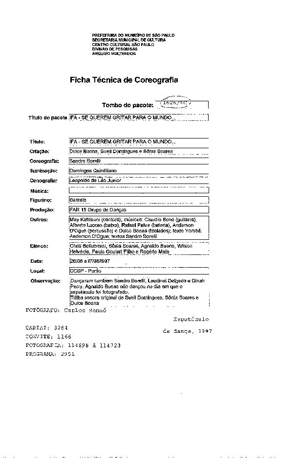 09/09/2021 by Centro Cultural São Paulo Leia Mais...Registro do espetáculo de Sandro Borelli apresentado no Centro Cultural São Paulo. Direção artística Sônia Soares, Dulce Bonna, Sueli Domingues.