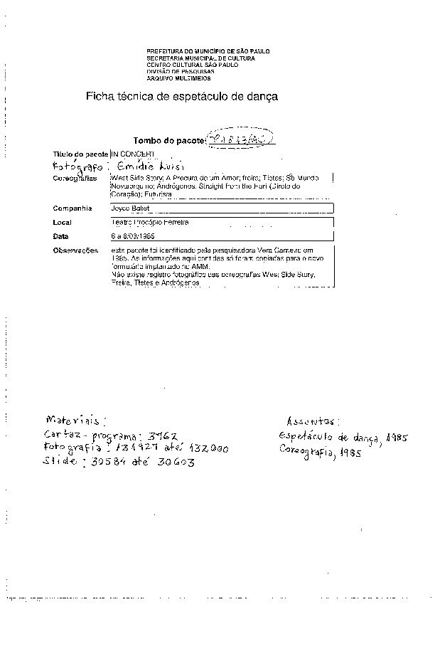 09/09/2021 by Centro Cultural São Paulo Leia Mais...Coreografia: West side story, A produra de um amor, Freira, Tietes, Sub-mundo novaiorquino, Andrógenos, Straight from the hart (Direto do coração), Futurista
