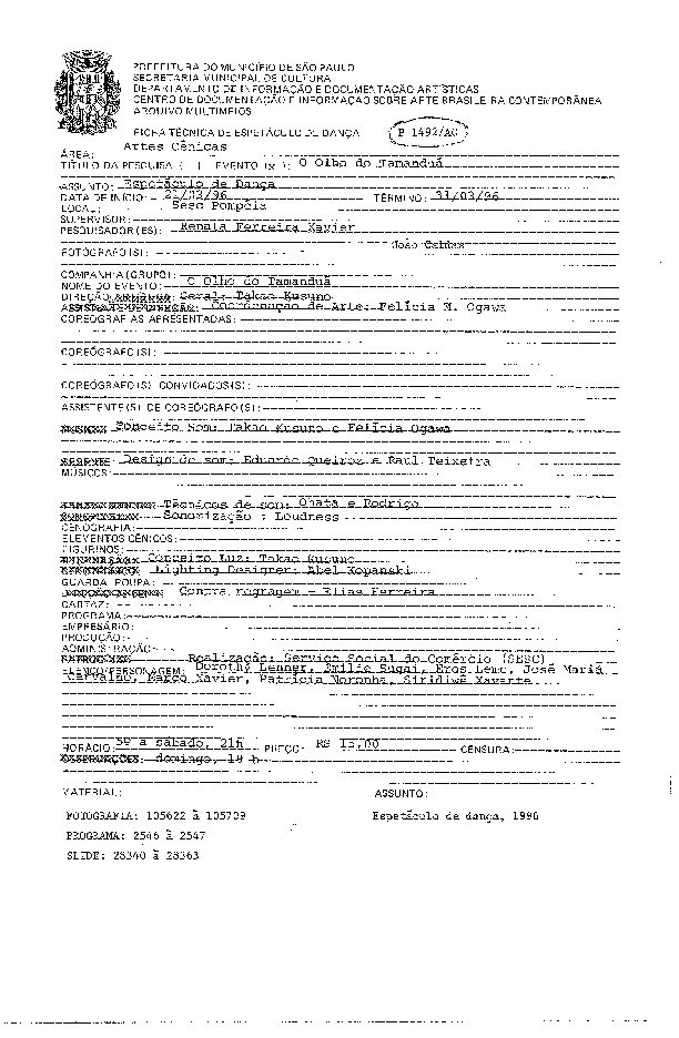 09/09/2021 by Centro Cultural São Paulo Leia Mais...Registro de espetáculo apresentado no SESC Fábrica-Pompéia. Direção Takao Kusuno.