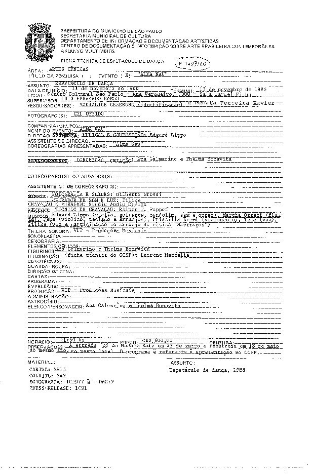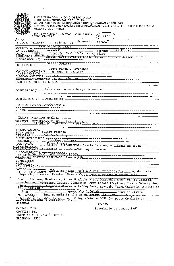 Registro do espetáculo do Ballet Stagium composto pelas coreografias Cenas sem Palavras e Stagium Dança Pixinguinha apresentado no Teatro Municipal de São Paulo.