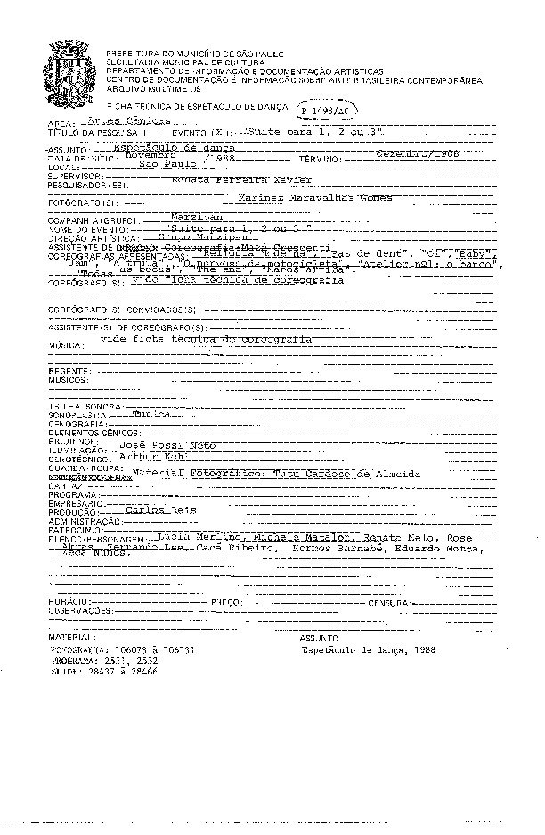 09/09/2021 by Centro Cultural São Paulo Leia Mais...Registro do espetáculo do Grupo Marzipan composto pelas coreografias Relíquia Moderna, Pas de Dent, Oi, Baby, Jam, A Truta, O Nervoso da Motocicleta, Atelier nº 1: o Banco,...