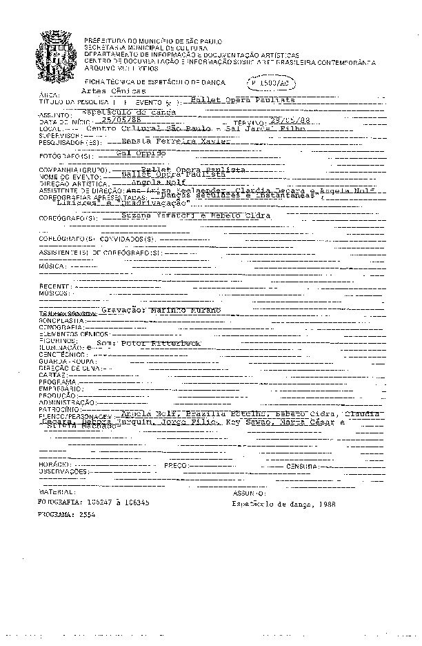 09/09/2021 by Centro Cultural São Paulo Leia Mais...Registro do espetáculo do Ballet Ópera Paulista composto pelas coreografias Danças Seculares e Instantâneas, Limiares e Quadrivagação, apresentado no Centro Cultural São Paulo. Direção Angela Nolf.