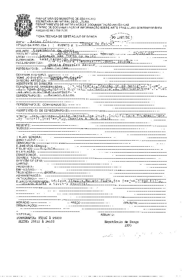 09/09/2021 by Centro Cultural São Paulo Leia Mais...Registro do espetáculo de Luis Arrieta apresentado pelo Balé da Cidade de São Paulo no Teatro Sérgio Cardoso.
