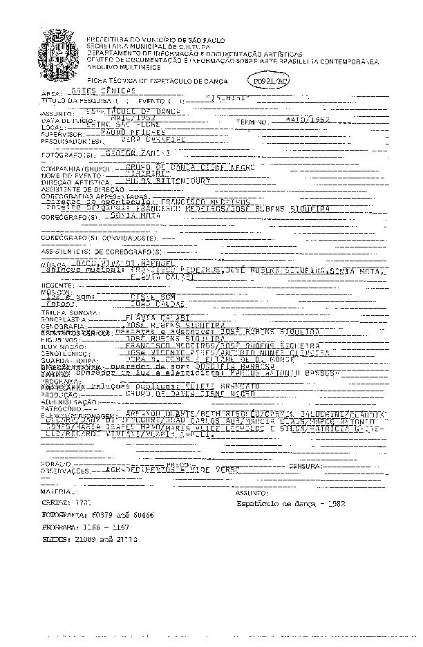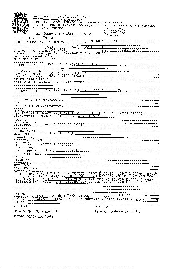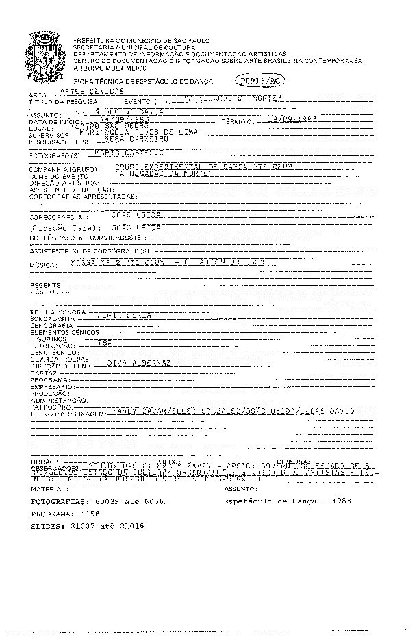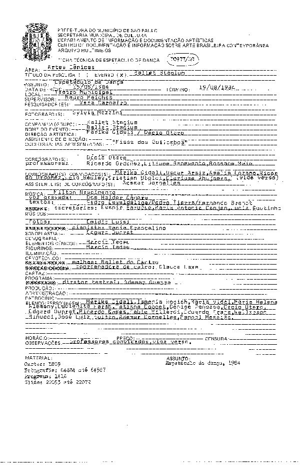 Registro do espetáculo de Décio Otero apresentado pelo Ballet Stagium no Teatro Municipal de São Paulo. Direção Décio Otero e Marika Gidali.