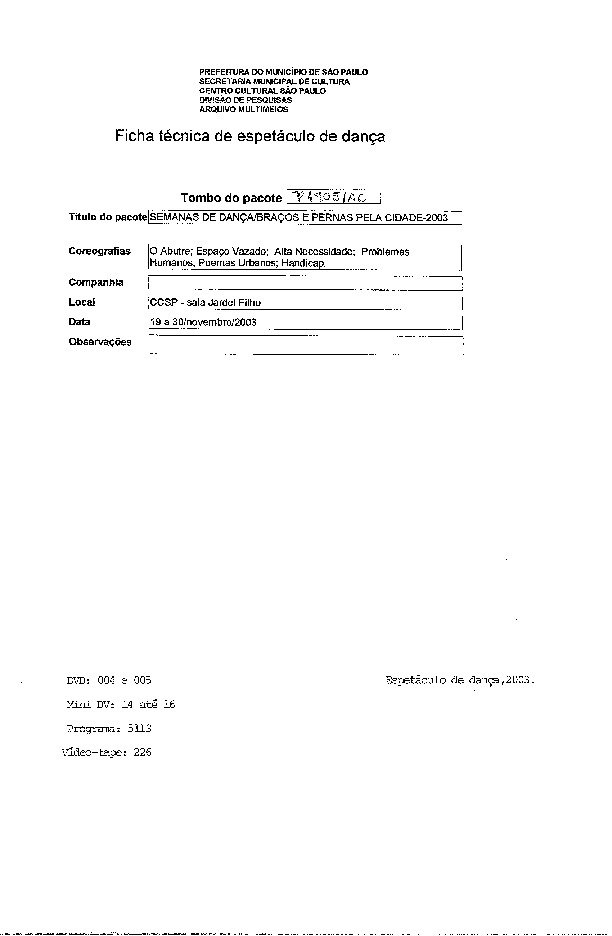09/09/2021 by Centro Cultural São Paulo Leia Mais...Coreografias: O Abutre, Espaço Vazado, Alta Necessidade, Problemas Humanos, Poemas Urbanos, Handicap.