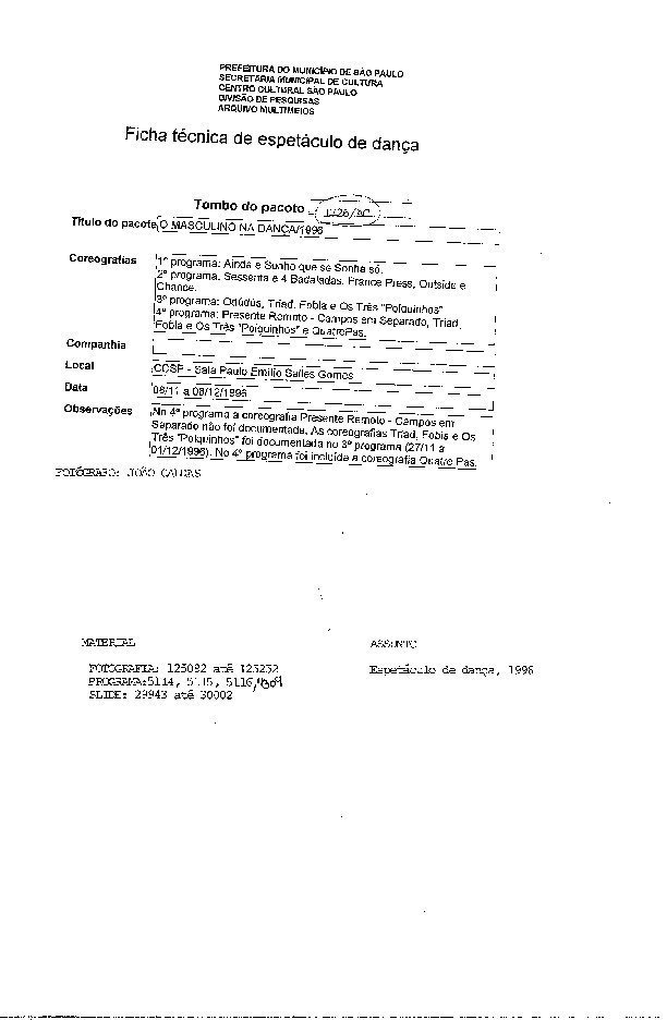 09/09/2021 by Centro Cultural São Paulo Leia Mais...Coreografias: Cortejo, Ações, Ponto Final da Última Cena, Do Lado de Lá, Um Outro Corpo, O Homem de Pé por Curiosidade, Um Campo em Preto e Branco.