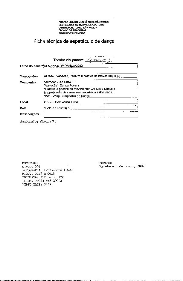 09/09/2021 by Centro Cultural São Paulo Leia Mais...Coreografias: Alfredo, Variação, Palavra poética do movimento, Kit.