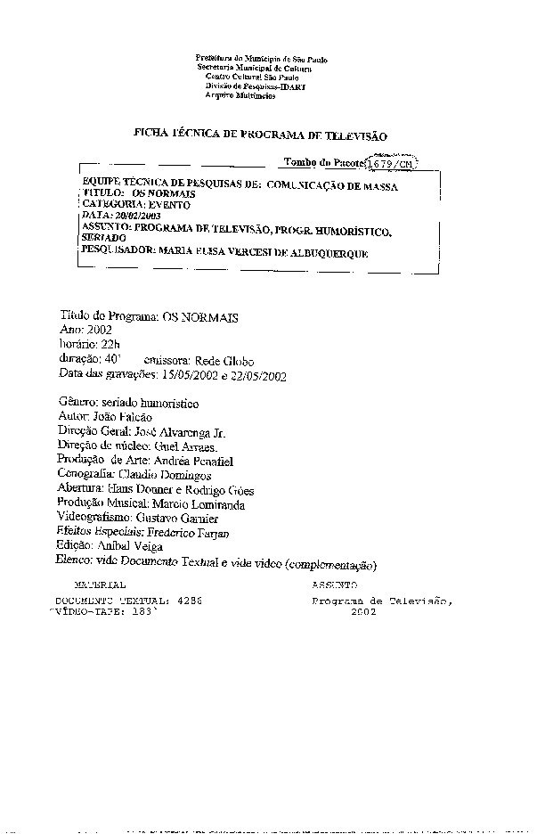 23/08/2022 by Francisco da Silva Santos Leia Mais...Registro do programa humorístico estrelado por Fernanda Torres e Luis Fernando Guimarães, levado ao ar pela Rede Globo.