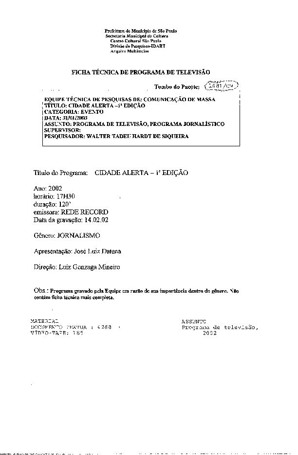 23/08/2022 by Francisco da Silva Santos Leia Mais...Registro do programa jornalístico apresentado por José Luiz Datena, levado ao ar pela Rede Record.