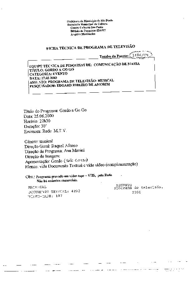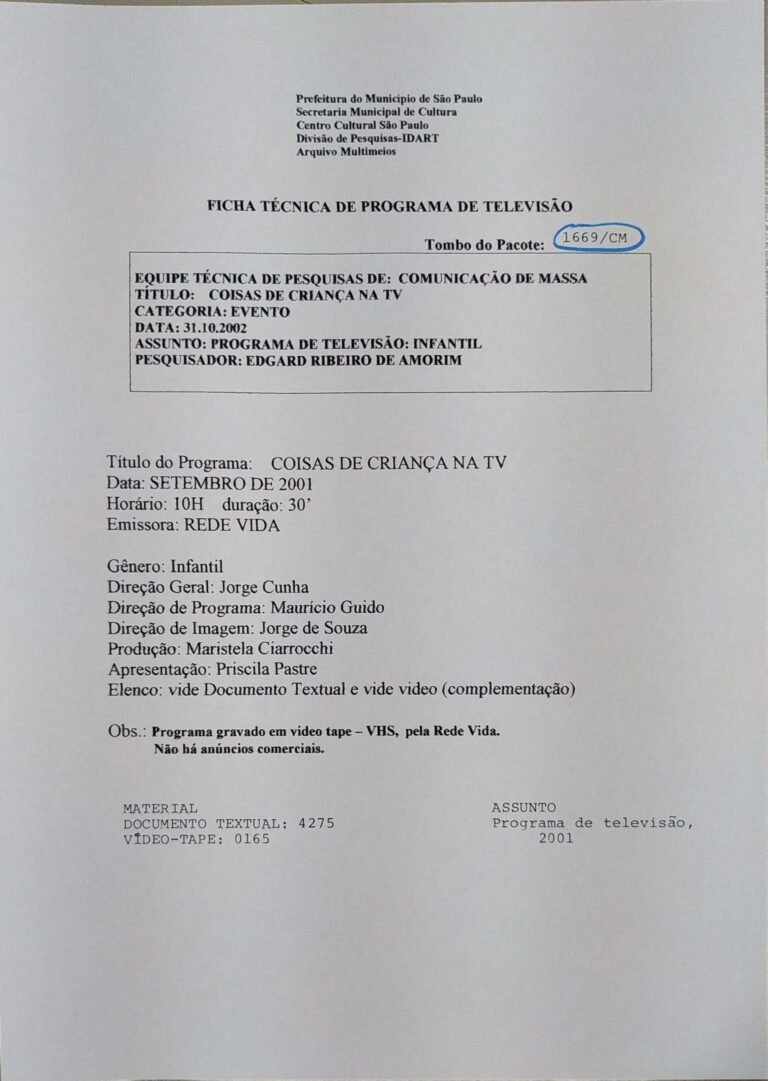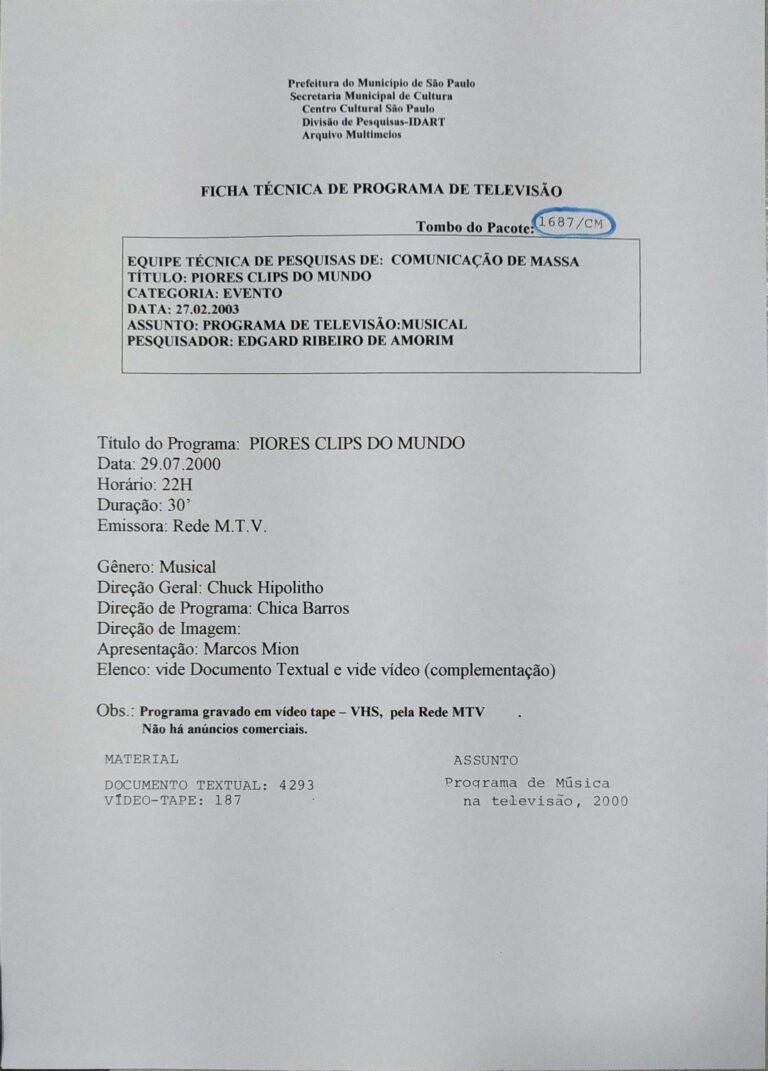 23/08/2022 by Francisco da Silva Santos Leia Mais...Registro do programa apresentado por Soninha, levado ao ar pela Rede MTV.