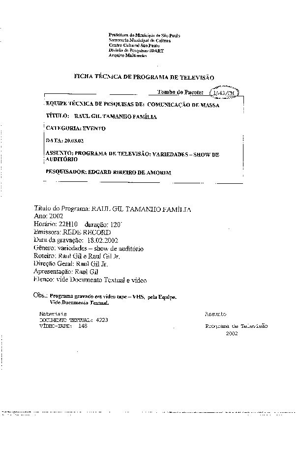23/08/2022 by Francisco da Silva Santos Leia Mais...Registro do programa apresentado por Raul Gil levado ao ar pela Rede Record