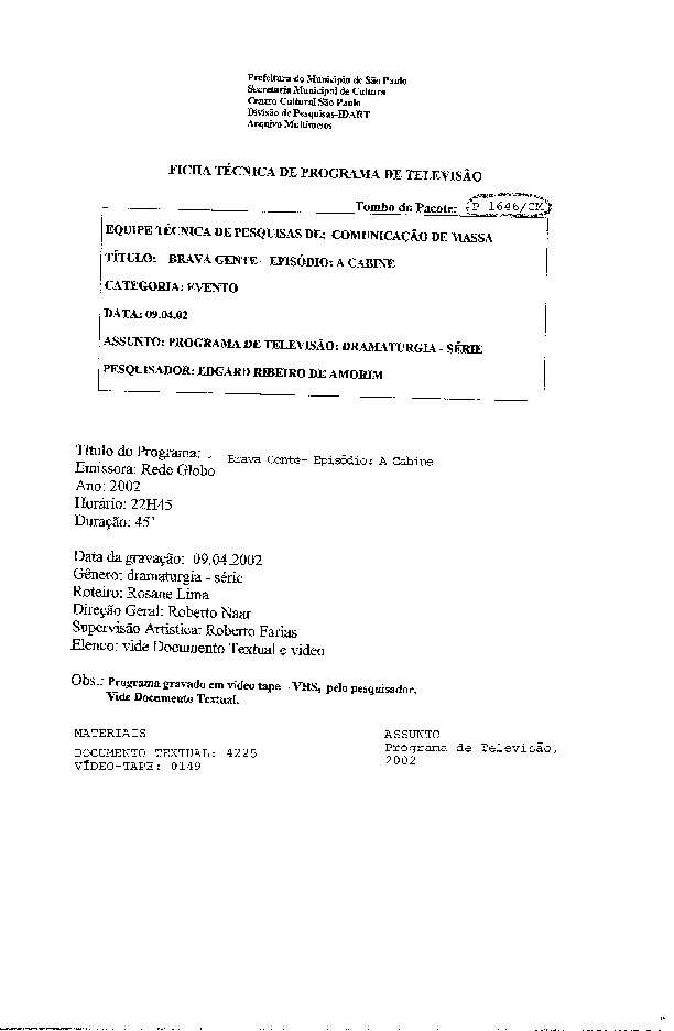23/08/2022 by Francisco da Silva Santos Leia Mais...Registro de episódio do programa Brava Gente, levado ao ar pela TV Globo