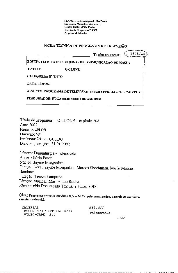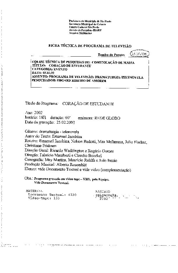 23/08/2022 by Francisco da Silva Santos Leia Mais...Registro de capítulo da telenovela de Emanuel Jacobina levada ao ar pela TV Globo
